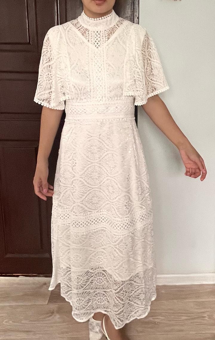 Белое платье с кружевами Очень красивый и нежный Без минуса Новый Подходит на размер 46-48 Артикул: 581957