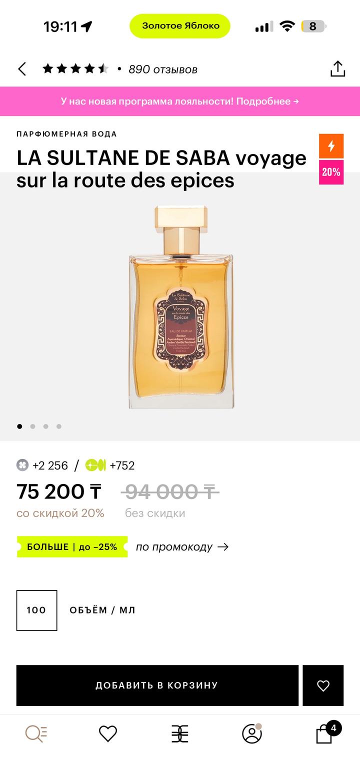 Восточный, пряный ,шлейфовый парфюм от бренда La sultane de Saba. Обьем 100мл, остаток 95мл Артикул: 581982