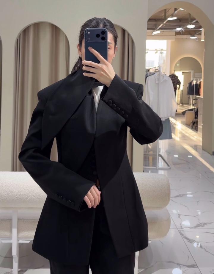 Абсолютной новый приталенный пиджак с повязкой в черном цвете, есть размеры S,M,L с этикеткой. Качество ТОП Артикул: 582045
