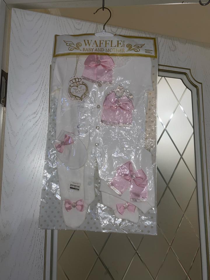 Нежный комплект для новорожденной принцессы Продается красивый нарядный комплект для малышки от бренда Waffle Baby and Mother. Идеально подойдет на выписку, фотосессию или особые случаи. В комплект входит: — Комбинезон — Шапочка — Носочки — Царапки (варежки) — Дополнительные аксессуары с бантиками Дизайн: Белоснежный цвет с нежными розовыми бантиками и декоративными элементами — выглядит очень стильно и празднично. Состояние: Новый, в оригинальной упаковке 📏 Размер: 0-3 мес Артикул: 582117