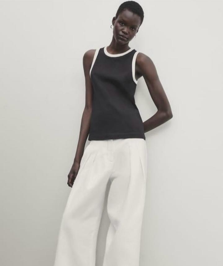 Майка с контрастной отделкой, по фигуре. Бренд Massimo Dutti Артикул: 582141