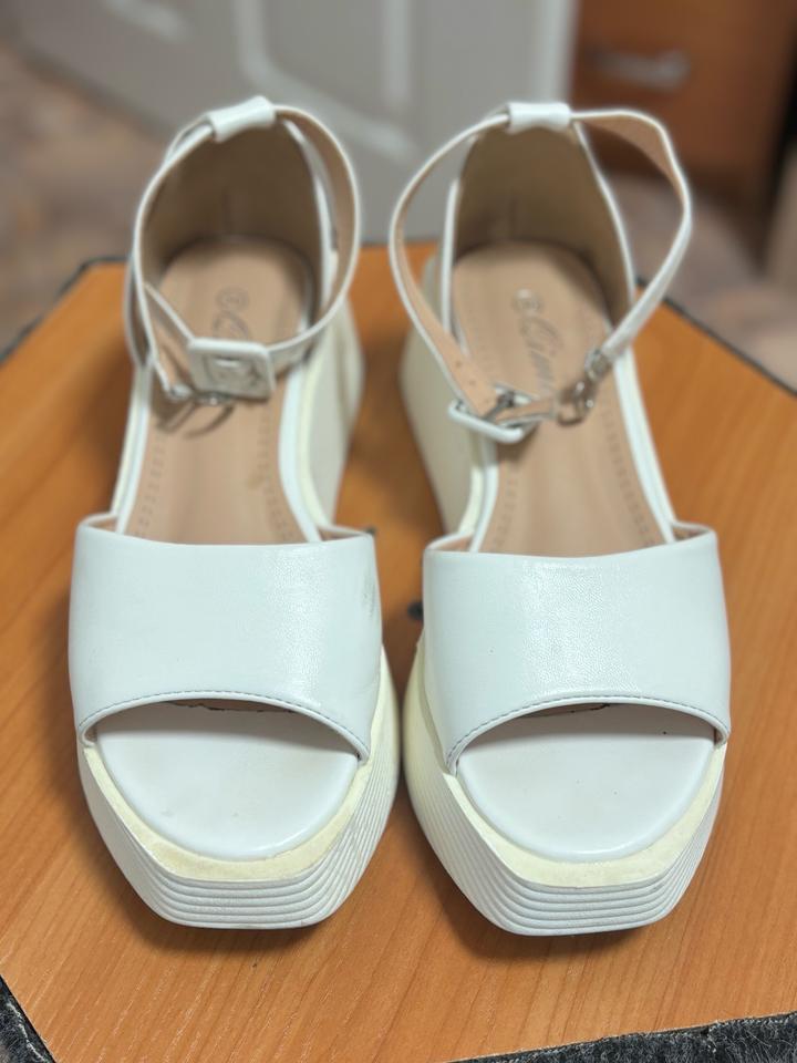 Носибельны, есть следы носки. Можно попробовать убрать пятна меланиновой губкой. Размер 36-36,5. Можно регулировать длину застежки. Абсолютно целые Артикул: 582143