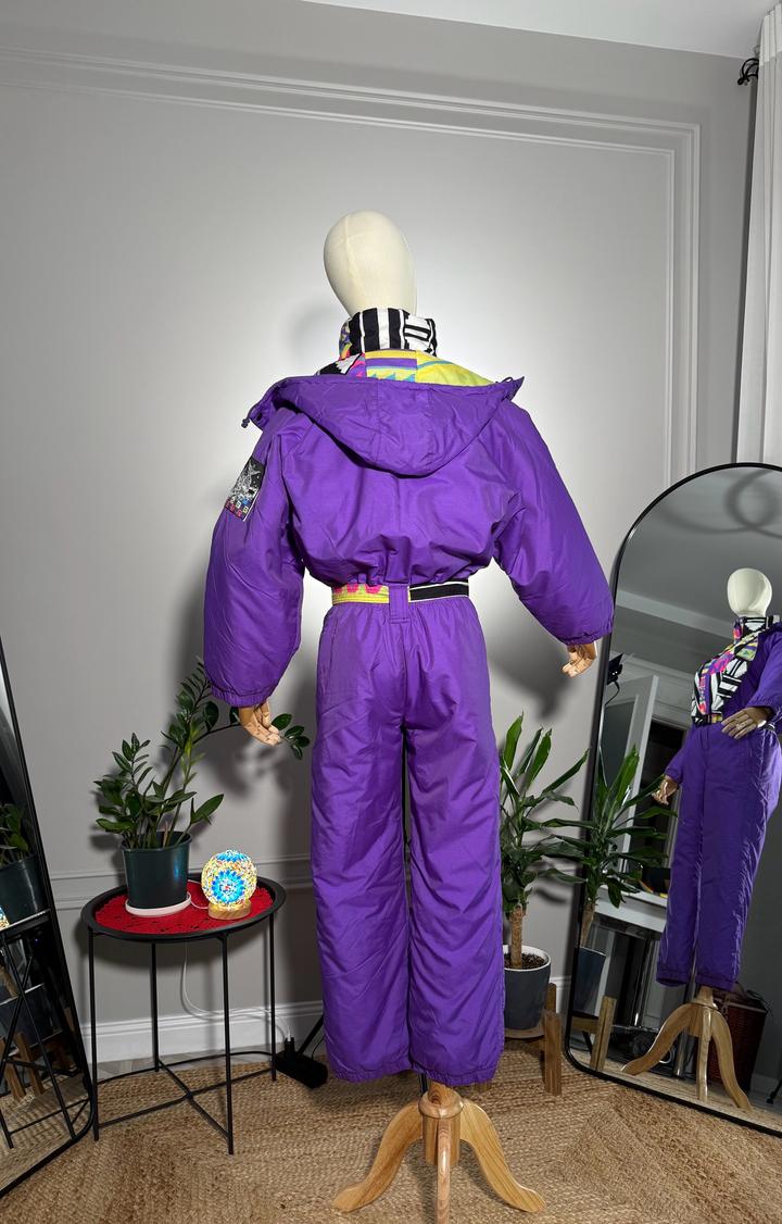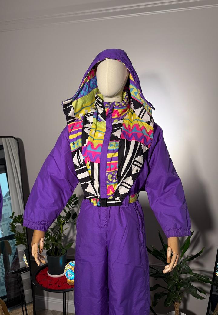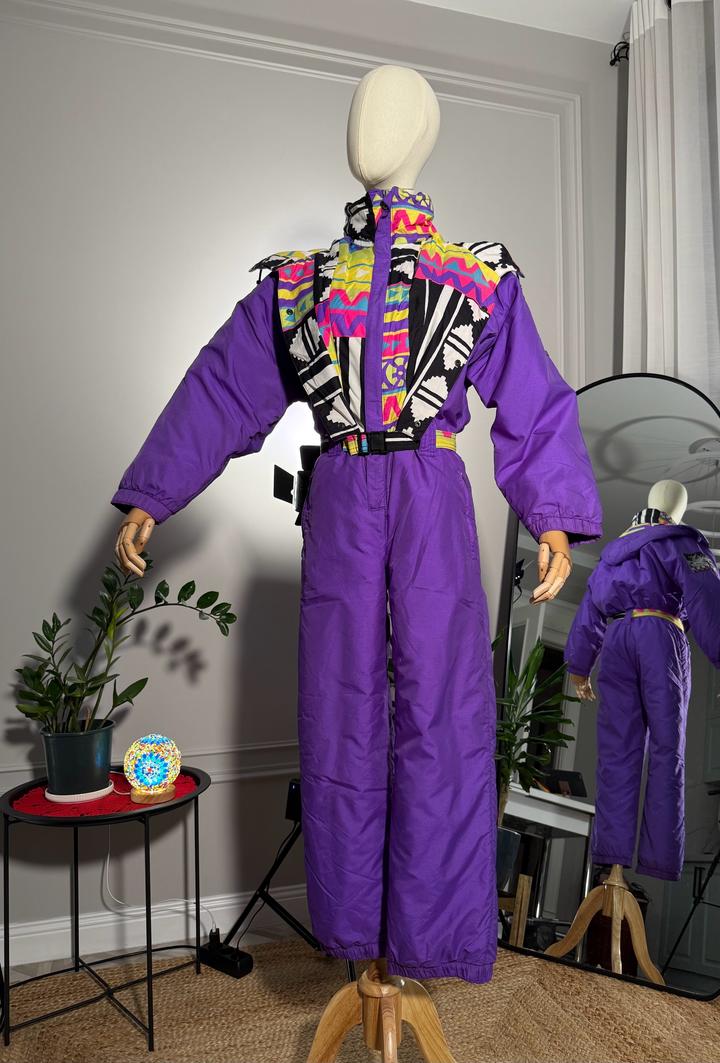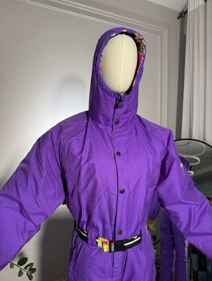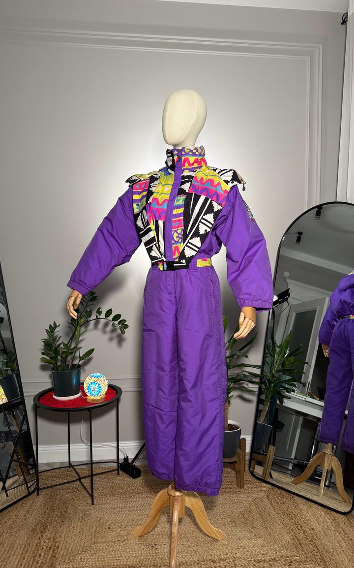 • Размер: XS-S (рост до 160 см) • Состав: 100% полиэстер • Состояние: 10 из 10 • Комментарий: Лыжный комбинезон фиолетового цвета с мульти-геометрическим принтом. Полная молния спереди, высокий воротник и закрытый капюшон - отлично защищает от ветра! 💨 Съемный пояс подчеркивает талию. Два наружных функциональных кармана. Кнопки брендированны лого Skiss. Артикул: 582380