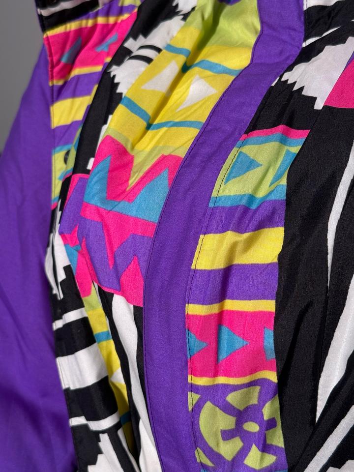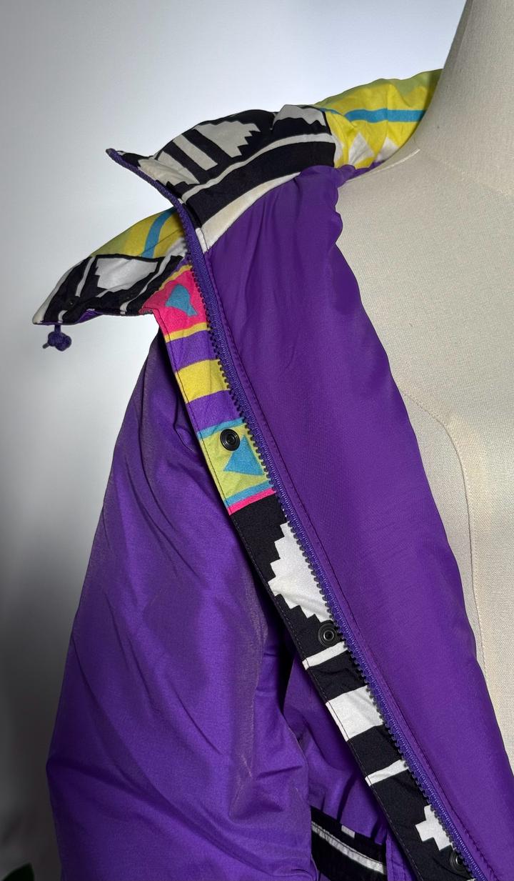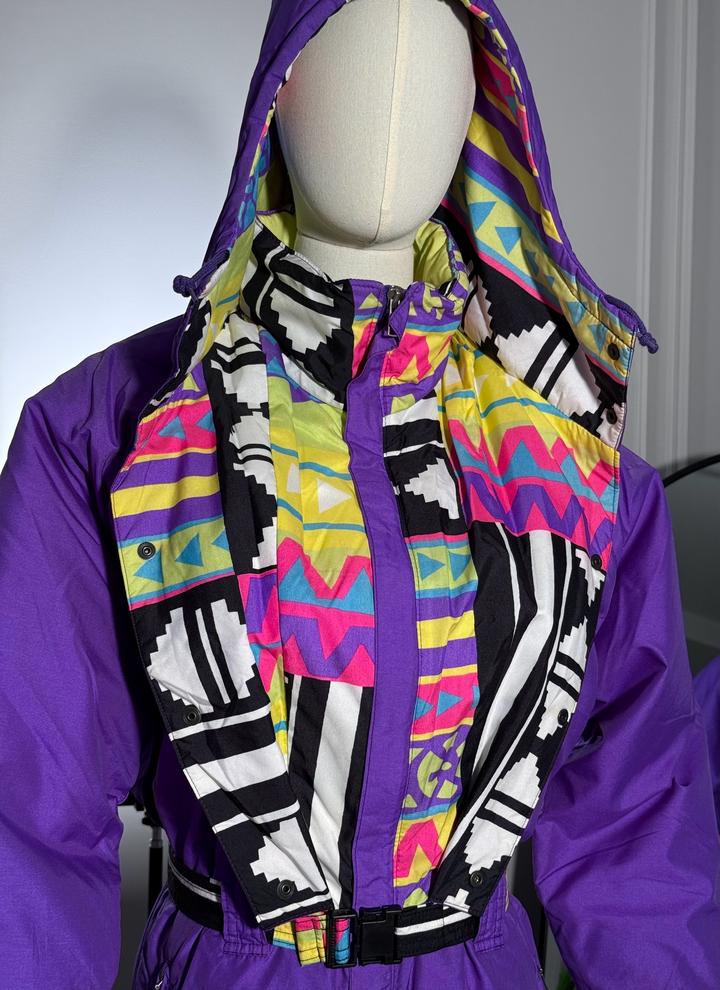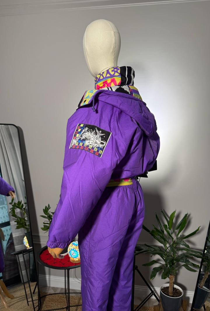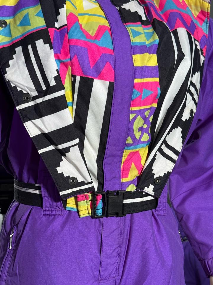 • Размер: XS-S (рост до 160 см) • Состав: 100% полиэстер • Состояние: 10 из 10 • Комментарий: Лыжный комбинезон фиолетового цвета с мульти-геометрическим принтом. Полная молния спереди, высокий воротник и закрытый капюшон - отлично защищает от ветра! 💨 Съемный пояс подчеркивает талию. Два наружных функциональных кармана. Кнопки брендированны лого Skiss. Артикул: 582380
