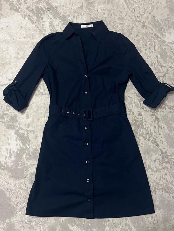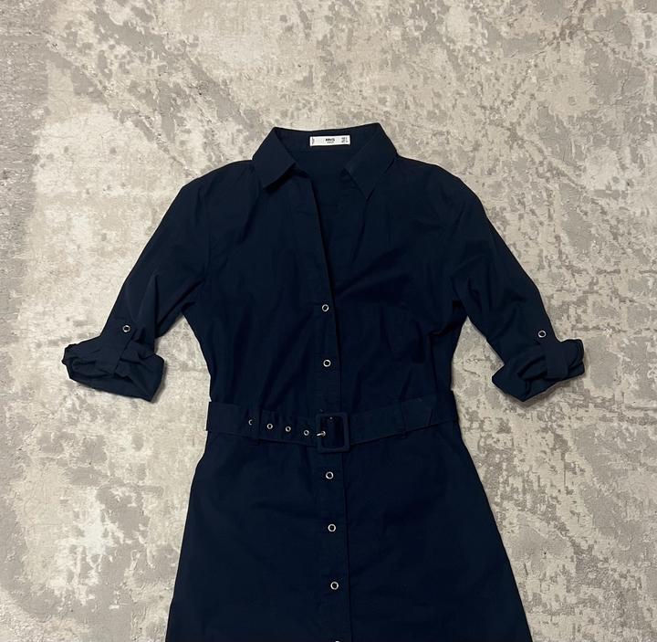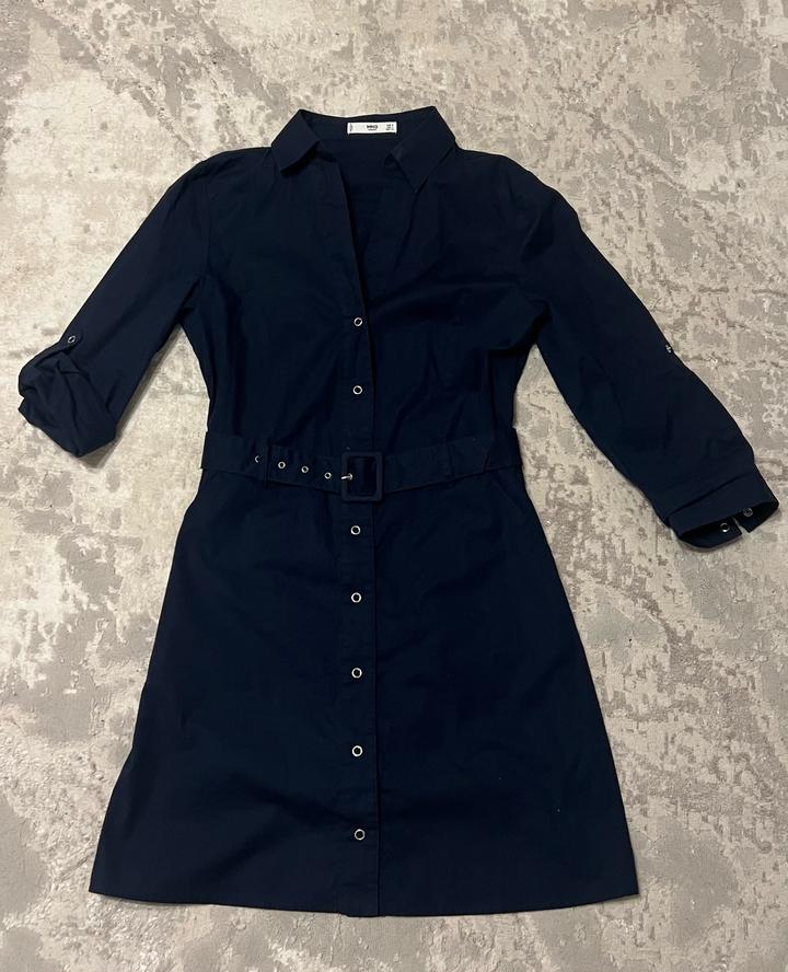 Платье темно синего цвета с поясом. Выше колена. На заклепках Артикул: 582394