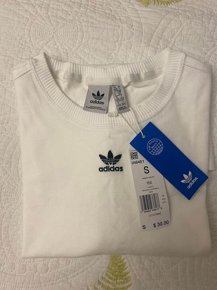 Футболка Adidas Unisex Цвет белый Размер S ( большемерит , может подойти на М и L) Круглый вырез горловины Свободный крой Качественный трикотаж: 100% хлопок Изготовлен в рамках инициативы Better Cotton Артикул: 582400