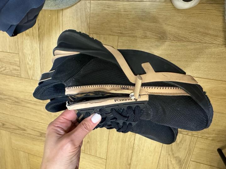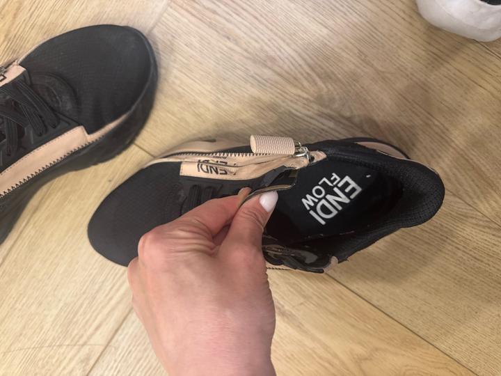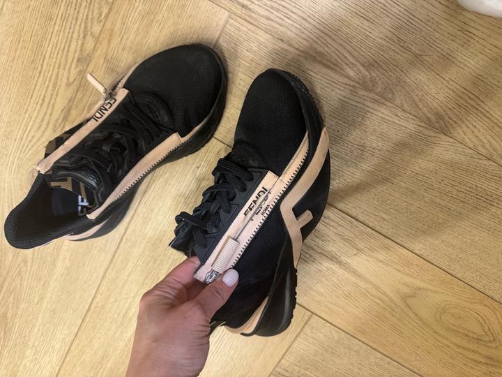 Продам кросовки оригинал, привезены были с ОАЭ. Коробка, пыльник все есть. Б/у в отличном состоянии! Размер маленький, надевала пару раз. Кроссовки Fendi Flow с регулируемыми эластичными шнурками и боковой застежкой-молнией. Украшены логотипом FF на язычке и резиновой накладкой с тисненым логотипом на задней части пятки. Изготовлены из нейлона, замши и LYCRA® черного цвета. Резиновые детали. Резиновая подошва высотой 35 мм с розовой диагональной буквой F. Сделано в Италии. Артикул: 582402