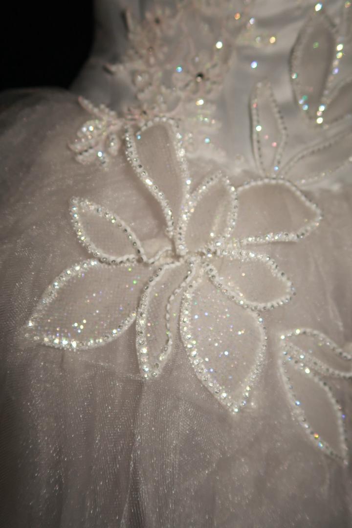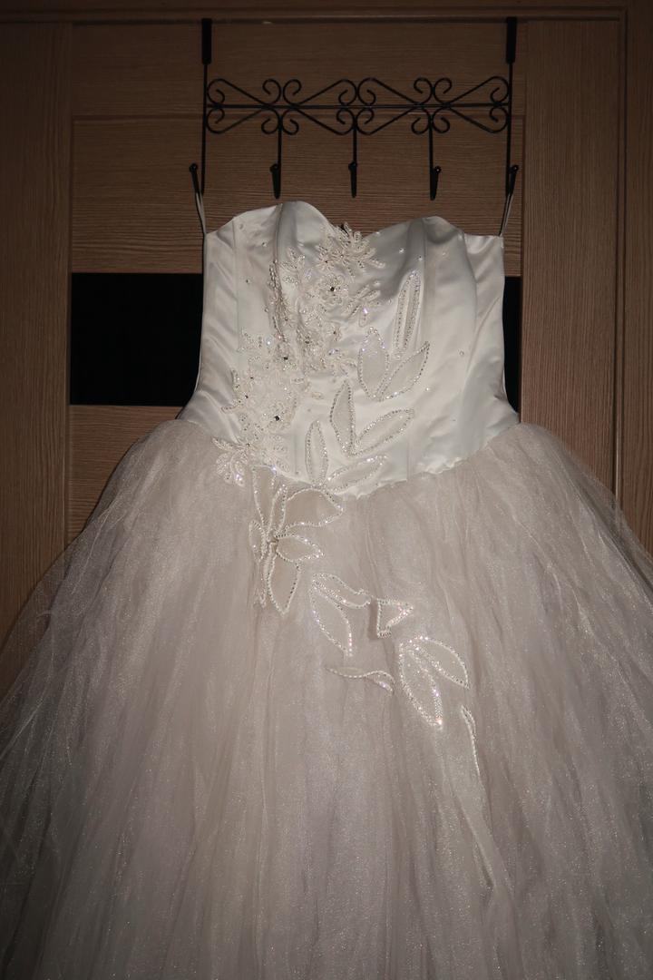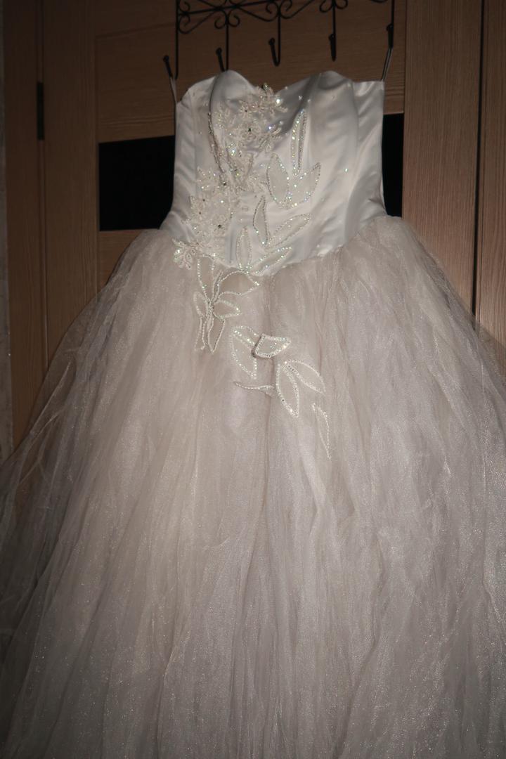 Свадебное платье женгешки, покупали за 100к, продаем за 30к, так как есть небольшой дефект, на фотках есть где именно. Размер до 46го, регулируется корсетом. +перчатки. Артикул: 582484