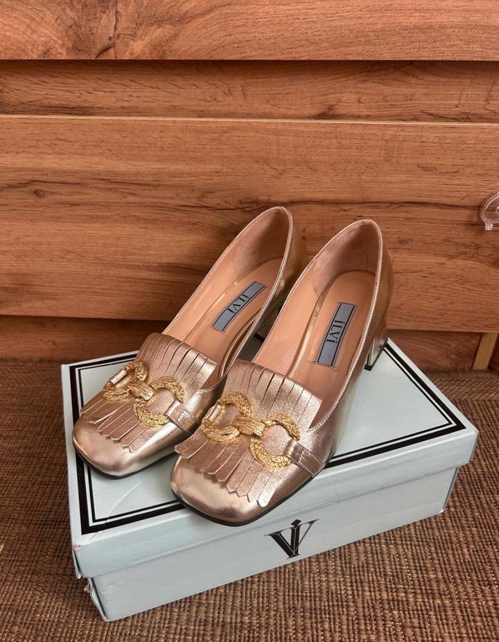 Кожаные туфли от турецкого бренда IIvi, качество суперское. Очень удобные, золотистого цвета, смотрятся шикарно. Надевала один раз, не подошел размер. Артикул: 582516