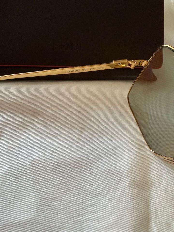 солнцезащитные очки бренда Fendi, модель FF 0439/S. Линзы обеспечивают 100% защиту от ультрафиолетового излучения и имеют среднюю степень затемнения (категория 2). Состояние идеальное. Пару раз всего надела. Оригинал. Были куплены в моно бутике Fendi. Артикул: 582540