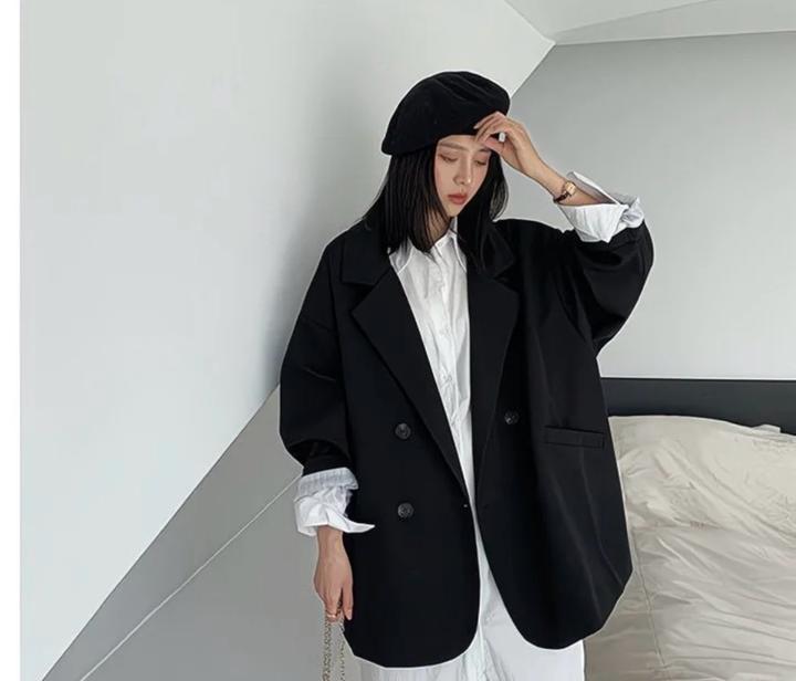 Черный пиджак, свободный крой, с длинным рукавом, корейский повседневный стиль, полиэстер Артикул: 582723