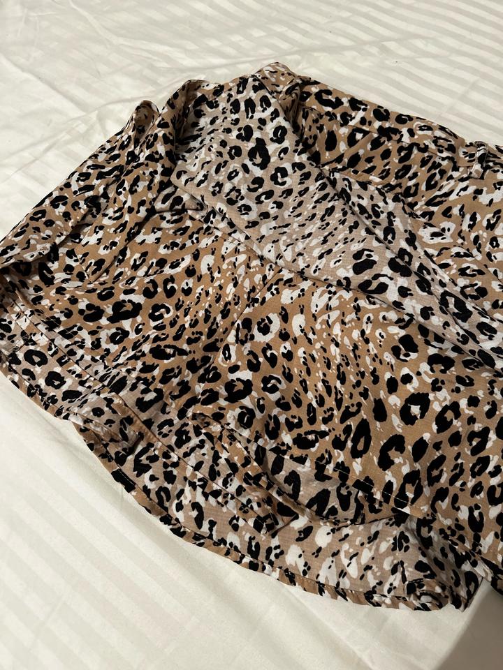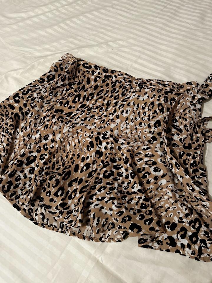 Легкая леопардовая мини юбка-шорты с поясом в идеальном состоянии, надевалась дважды (на фото). Рост на фото - 175 см. Указанный размер L, ближе к M. Артикул: 582734