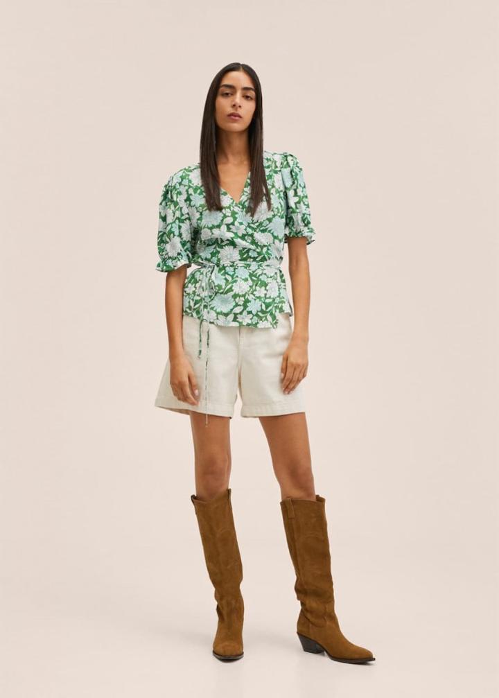 Блузка из лёкой ткани, на запах, с цветочным принтом. Хорошо подчеркивает талию, на завязке. Подойдет носить как с юбкой, так и с джинсами. Артикул: 582736