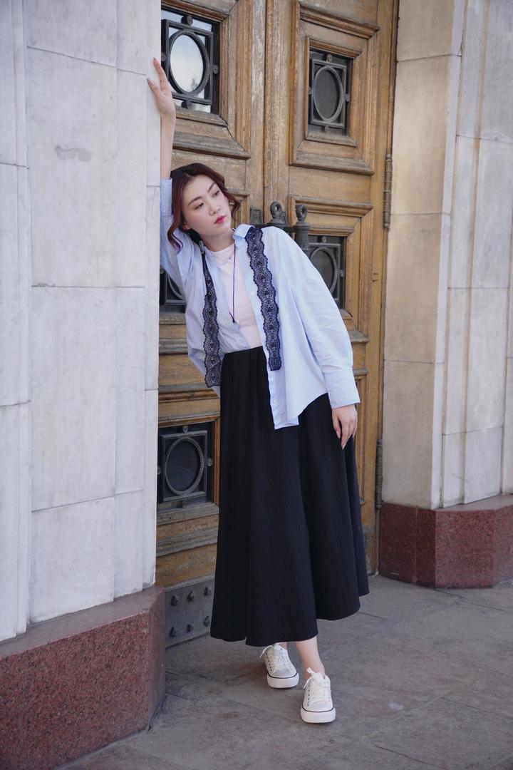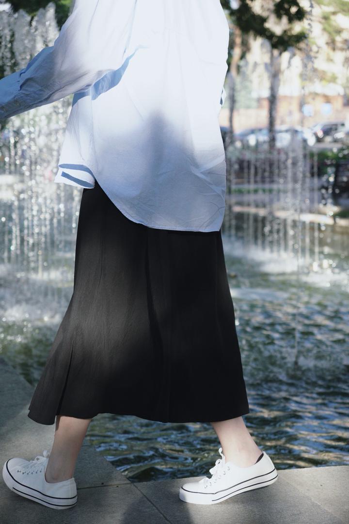 Юбка миди из очень легкой ткани на резинке. Рост на фото - 175 см. Размер S-L. Артикул: 582743