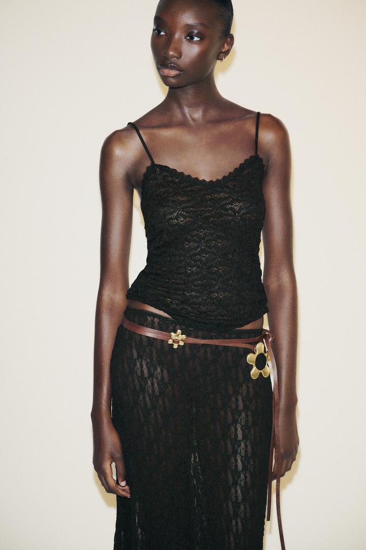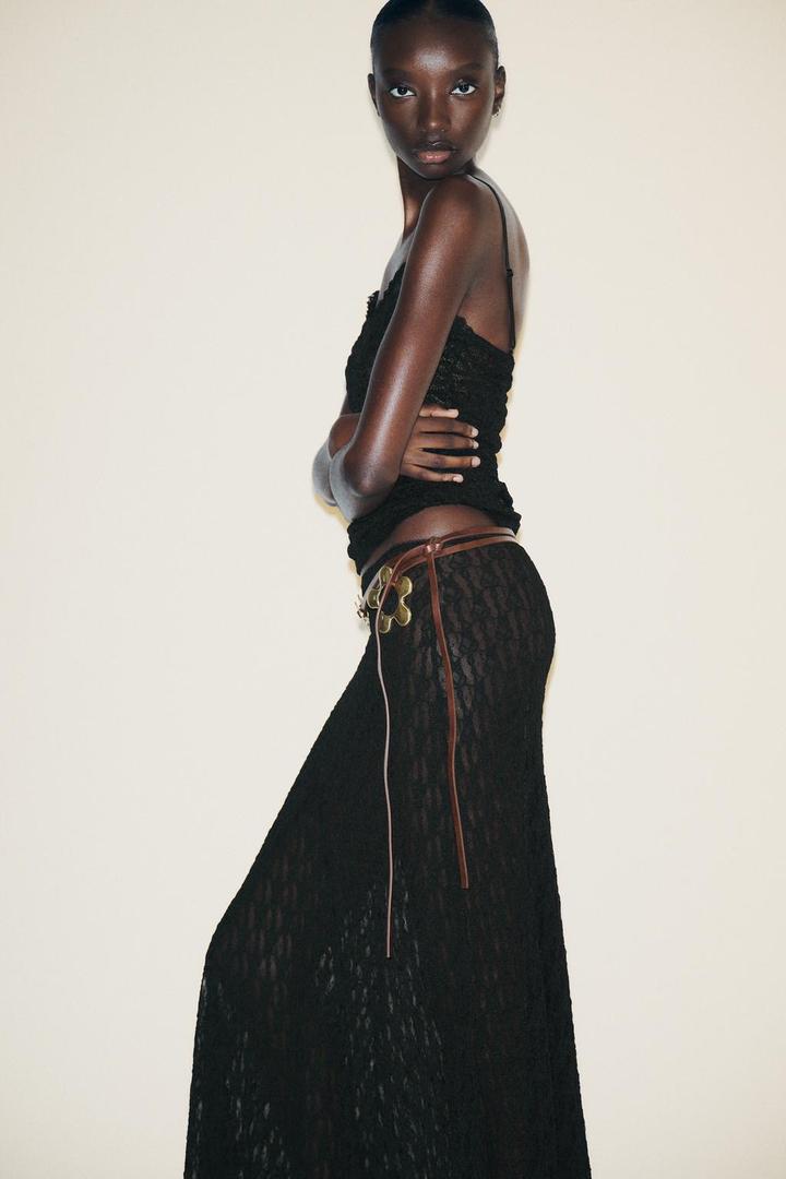 Длинная юбка из кружева. Высокая посадка, эластичный пояс. Расклешенный низ. Подкладка отсутствует Подойдёт на М, L Артикул: 582758