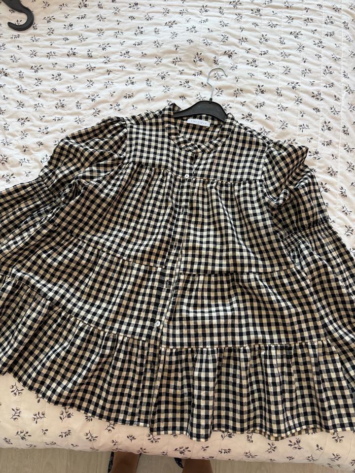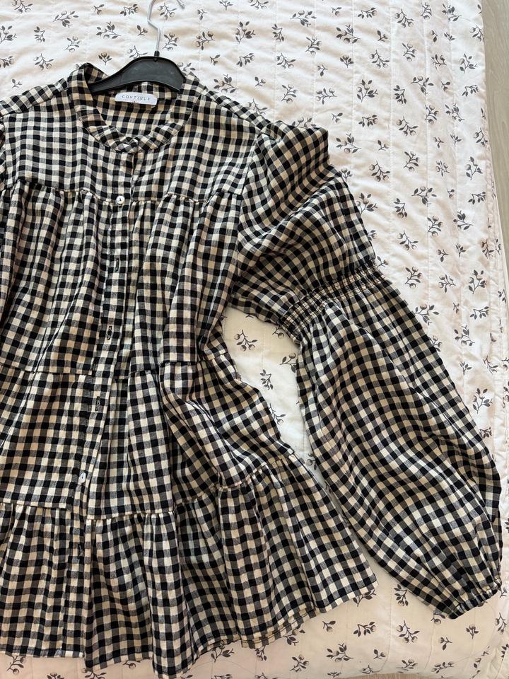 ✨ Очень стильная блуза в клетку с объёмными рукавами и свободным кроем • Посадка: oversize (подойдёт на S–L и даже для беременных 🤍) • Ткань: лёгкая, дышащая (по ощущениям хлопок/вискоза) • Состояние: отличное 🔥 Особенности: — красиво ложится, не облегает — трендовый крой с объёмом — универсальный принт (чёрно-беж клетка) Идеально для: — повседневных образов (джинсы, кеды) — более женственных (с юбкой/сапогами) — беременным — не давит, очень комфортно Артикул: 582793