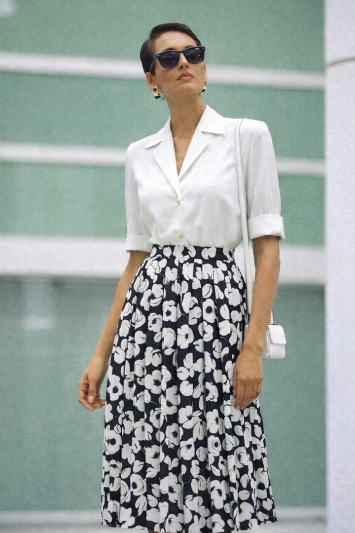 Плиссированная модель миди с выразительным черно-белым цветочным принтом красиво струится и держит форму. Бренд считался премиальным pret-a-porter и couture сегментом, ассоциируется с классикой и зрелой элегантностью. Стосточние новой вещи. Артикул: 582851