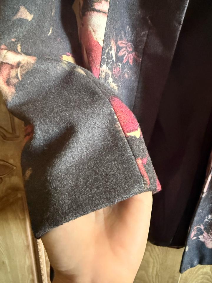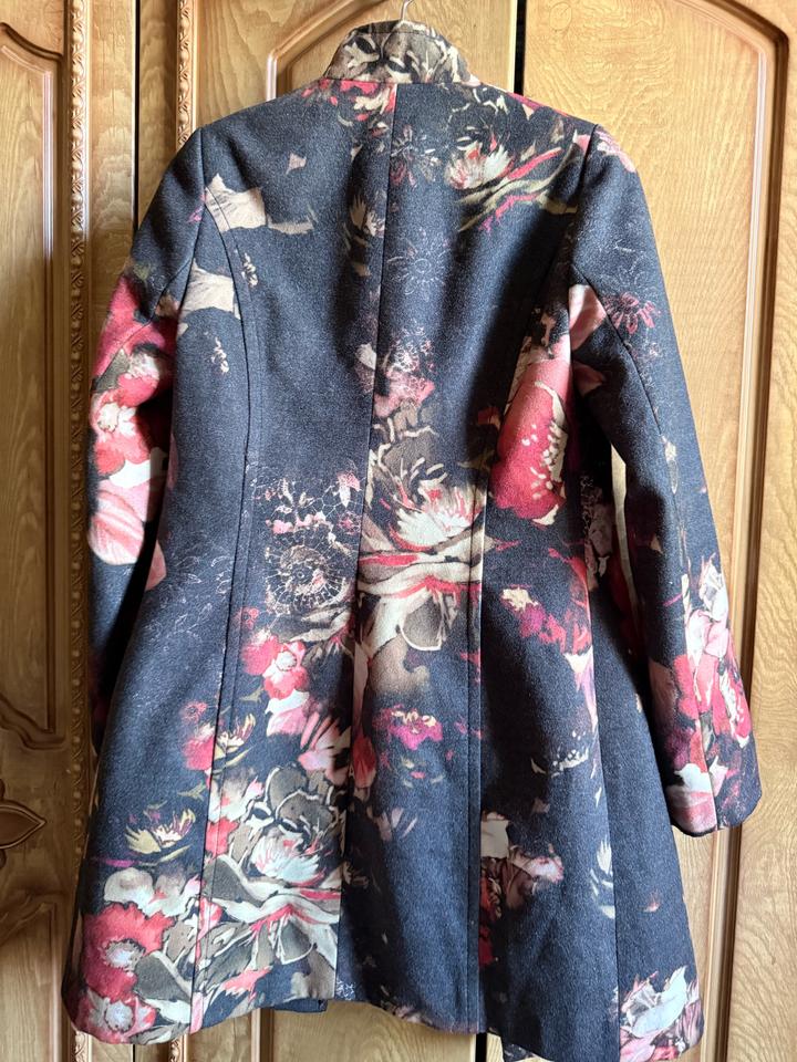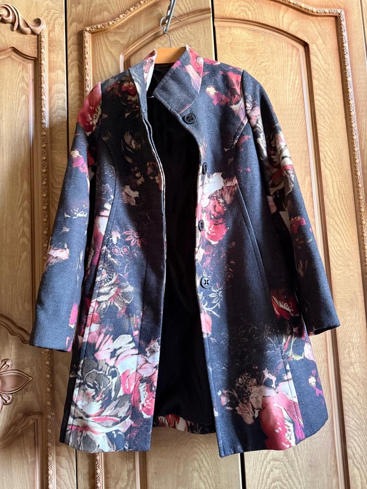 Стильное женское пальто премиального качества от итальянского бренда Quinto. Очень красивый и необычный цветочный принт — смотрится дорого и выделяется. — Размер: S (подойдёт на 42–44) — Качественная плотная ткань, хорошо держит форму — Подклад внутри — Классический крой — подчёркивает силуэт — В отличном состоянии Пальто лёгкое, но при этом тёплое — идеально на весну/осень. Смотрится намного дороже своей цены. Артикул: 582886