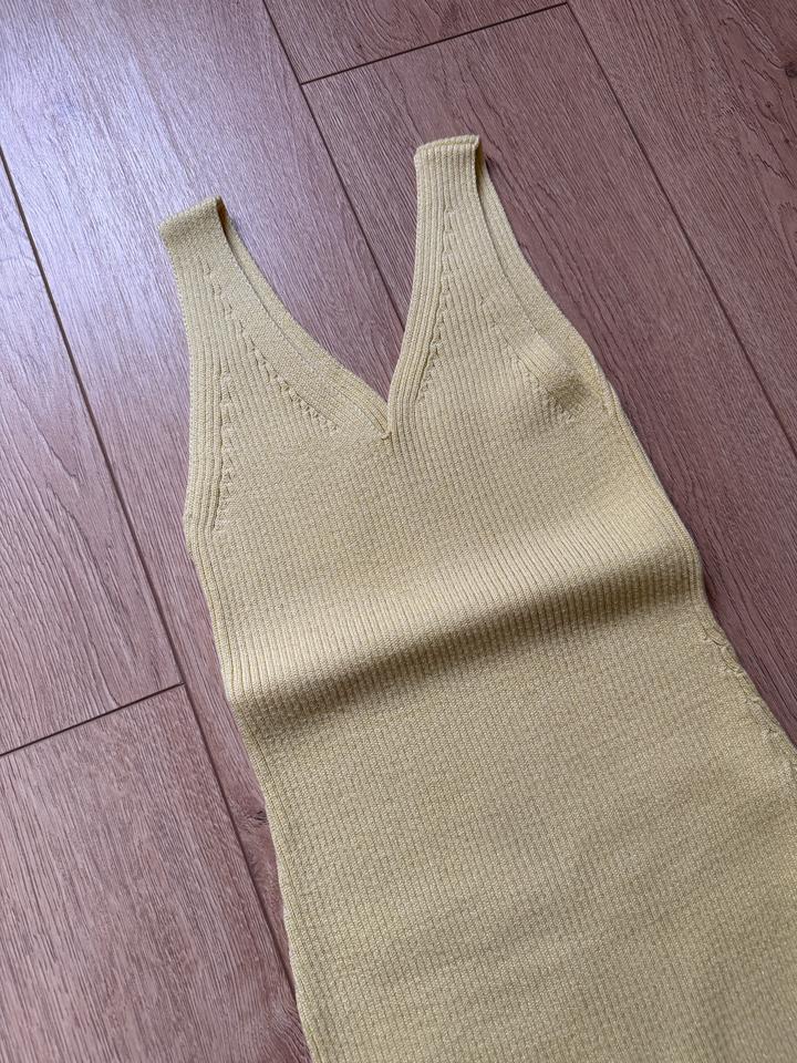 Вязанное платье макси, универсального размера xs-m, нежно желтого цвета с люрексом (фото не передает) Артикул: 582897