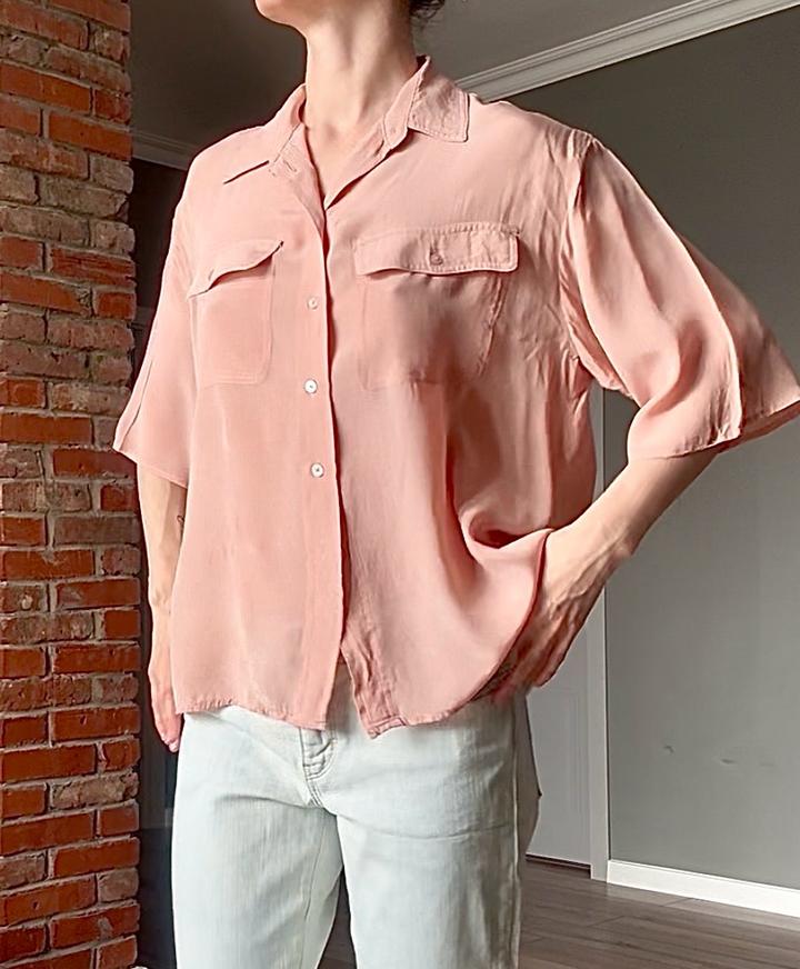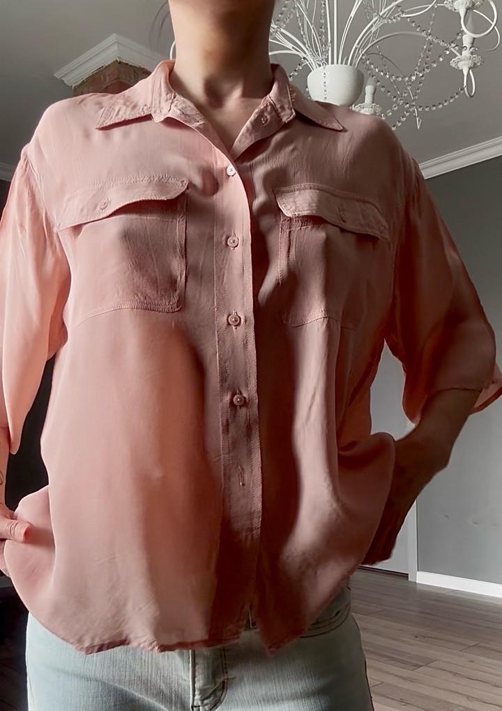 Струящаяся блуза MANGO из Вискозы персикового цвета. Дышащий, Очень красивый немного переливающийся материал 🍑 Обратите внимание ‼️ под воротником небольшой дефект(разошелся шов)! Но если не поднимать воротник, то не заметно, поэтому цена минимальная! В остальном состояние замечательное Артикул: 583052