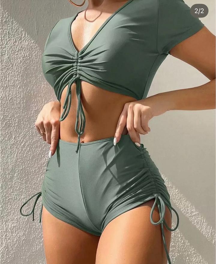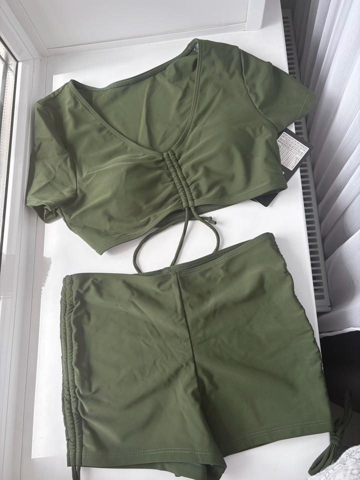Купальник в цвете хаки. Раздельный с топом и шортами. Абсолютно новый с этикеткой. Размер на этикетке 38, на S или XS, на маленькую грудь. Артикул: 583108