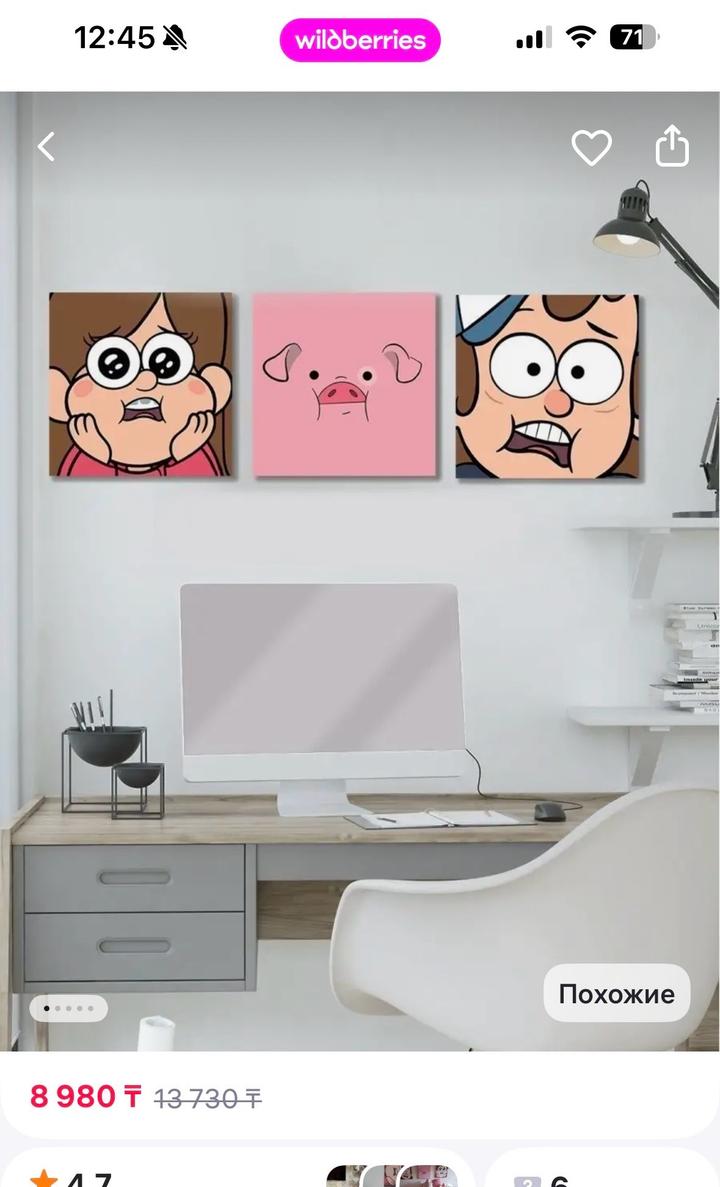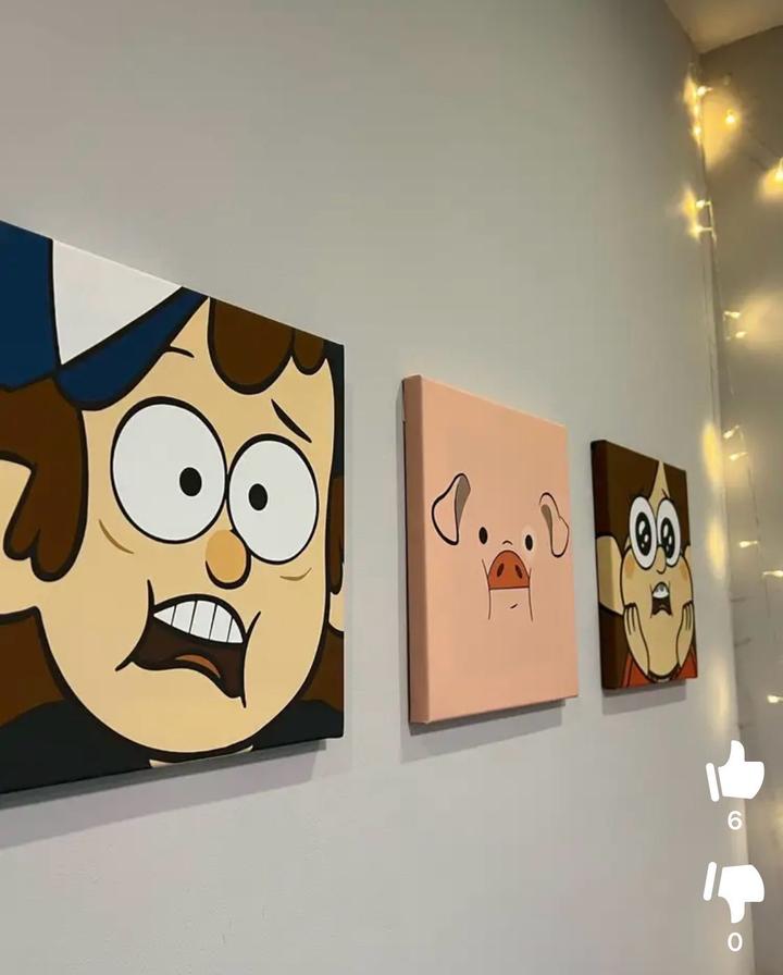 Каждая картина 30х30 см Синтетический холст, деревянный подрамник, галерейная натяжка, устойчивость к выцветанию, экологичный подрамник, три части размером 30х30 см Модульная картина с персонажами из известного мультсериала Гравити Фолз — Мэйбл, Диппер и Пухля, выполненная в ярком мультяшном стиле. Изображение на синтетическом холсте с использованием современных способов печати гарантирует стойкость и яркость красок. Артикул: 583158