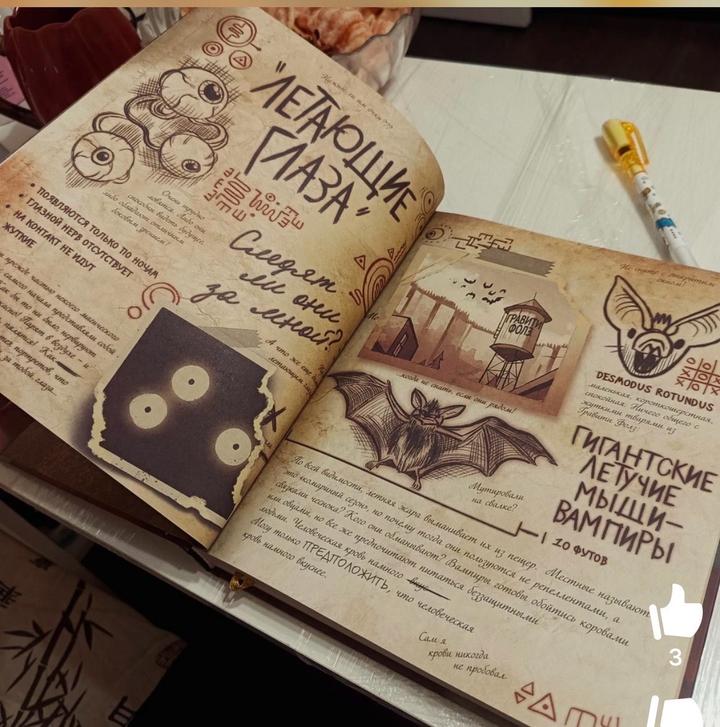 Дневник №3 содержит в себе все страницы, которые вы когда-либо видели в сериале, плюс новые страницы с монстрами, секретами, заметками Диппера и Мэйбл, а также полной историей Автора дневника. Фанаты Гравити Фолз полюбят эту 288-страничную версию дневника №3! Также обложка может складываться в эксклюзивный постер! Артикул: 583179