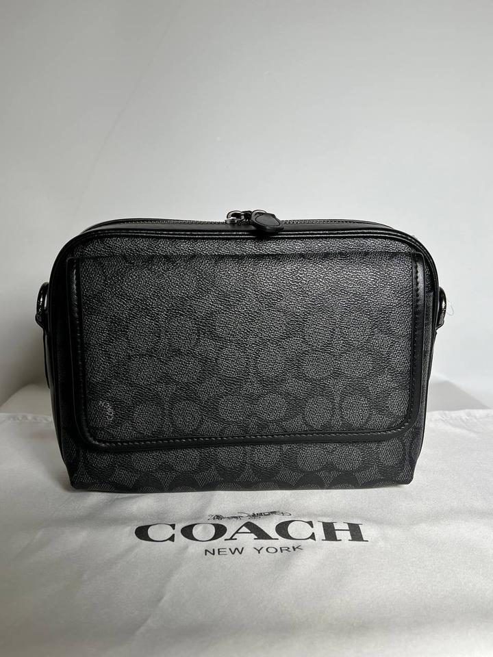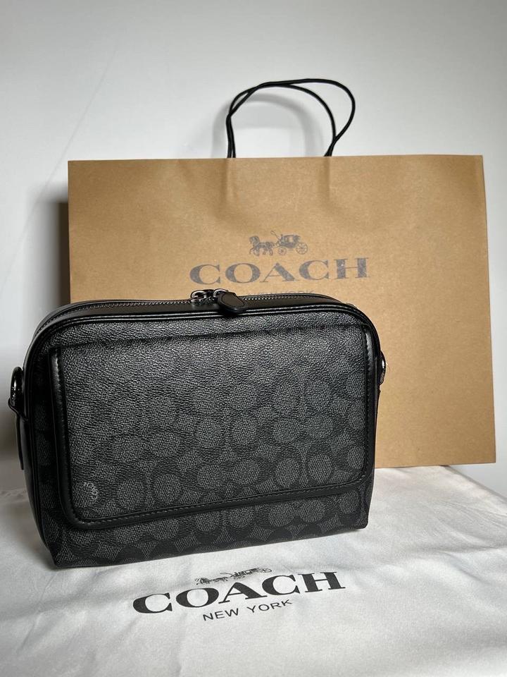 Бренд Coach по праву называют легендарным. Аксессуары класса люкс. Лаконичный дизайн и элегантный внешний вид – это делает бренд особым и популярным во всем мире. Материал: Фирменный холст с покрытием и изысканная телячья кожа. Тканевая подкладка Застежка: молния Размеры: 24 х 17 х 5 см Внешний карман на магнитной кнопке. Внутренний карман на кнопке Застежка-молния В комплекте фирменный картонный пакет,фирменный пыльник защитный пакет и конверт Артикул: 583348