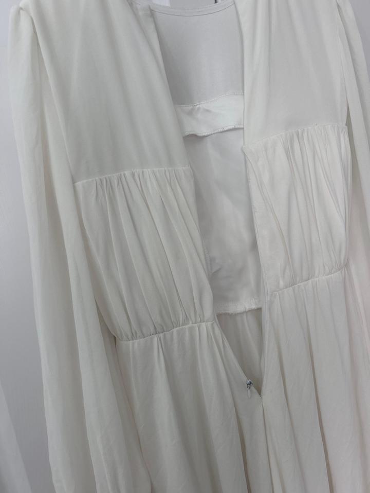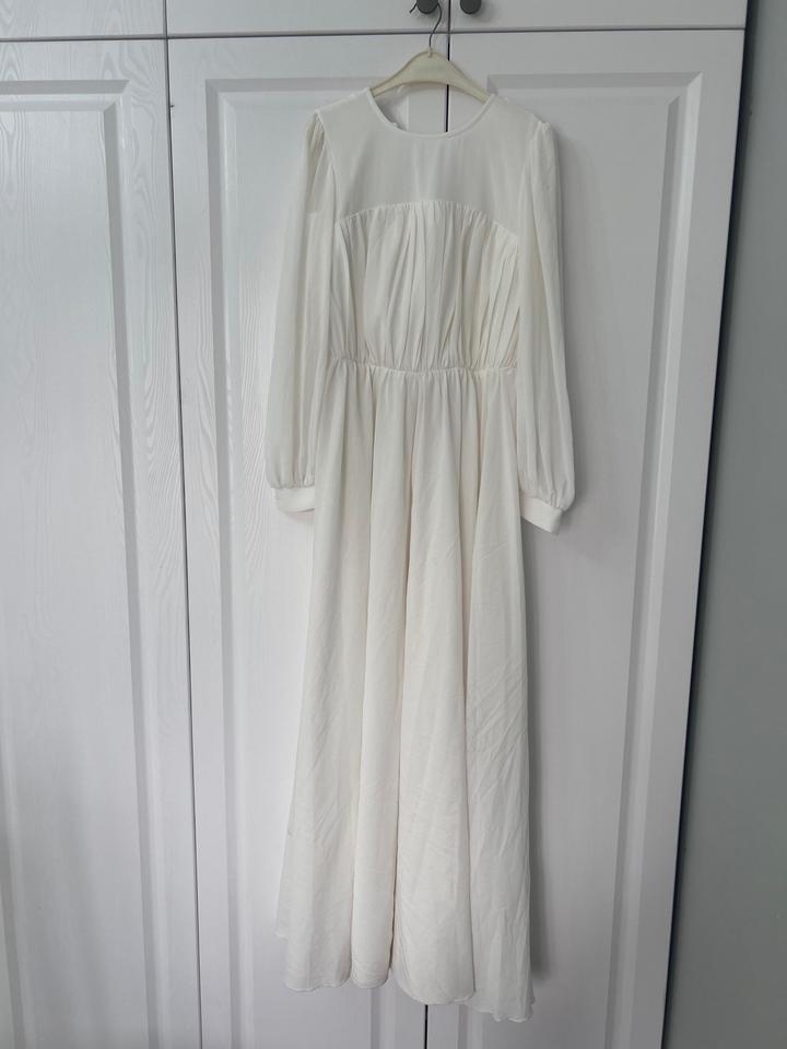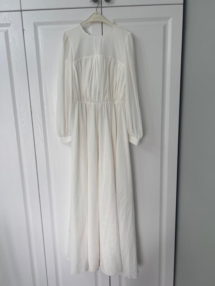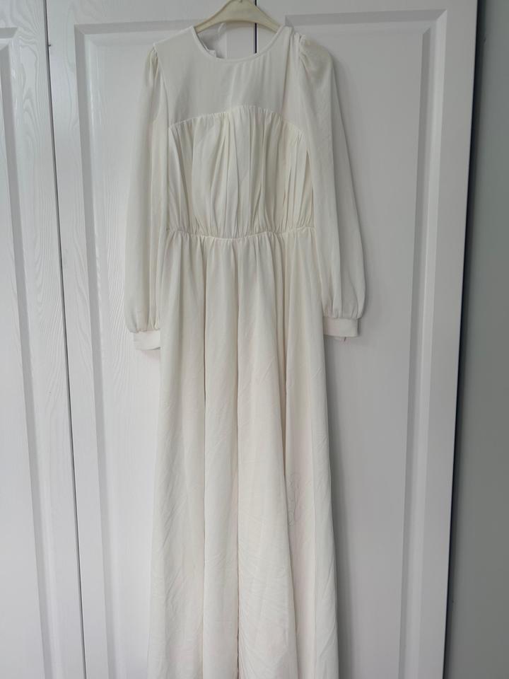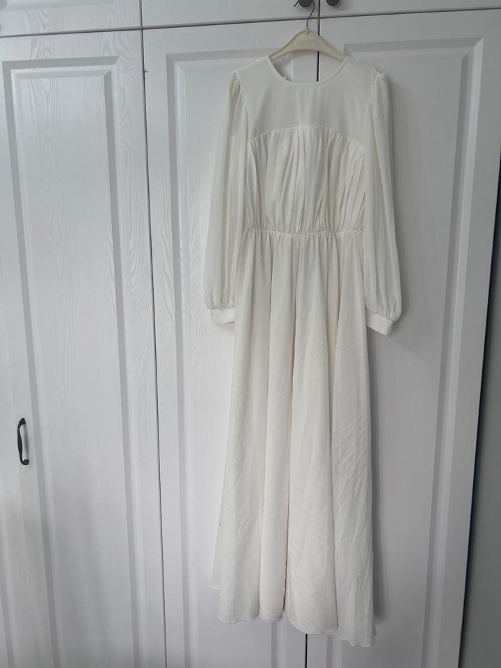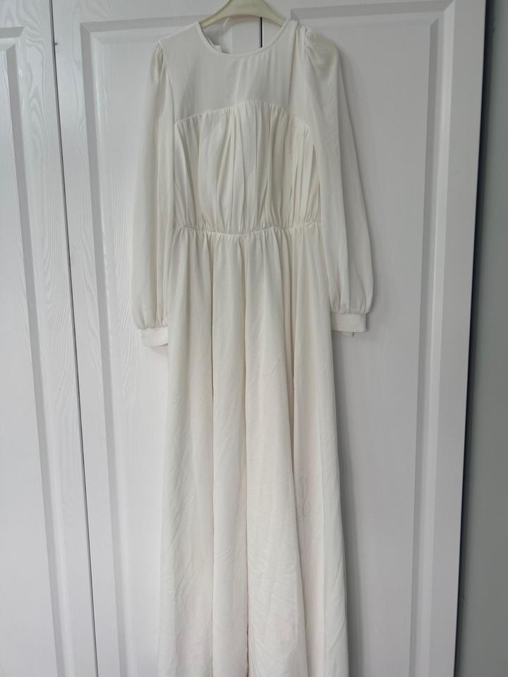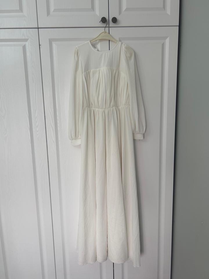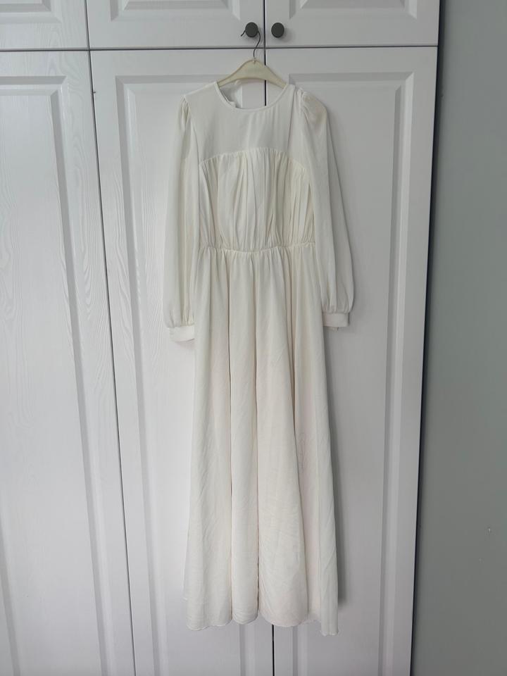 Белое платье сшитое на заказ подойдет как базовое платье под камзол на узату или сырга Салу очень качественная и приятное к телу ткань на стройную девушку размер хс с единственный минус замок нужно поменять в остальном состояние идеальное Артикул: 583358