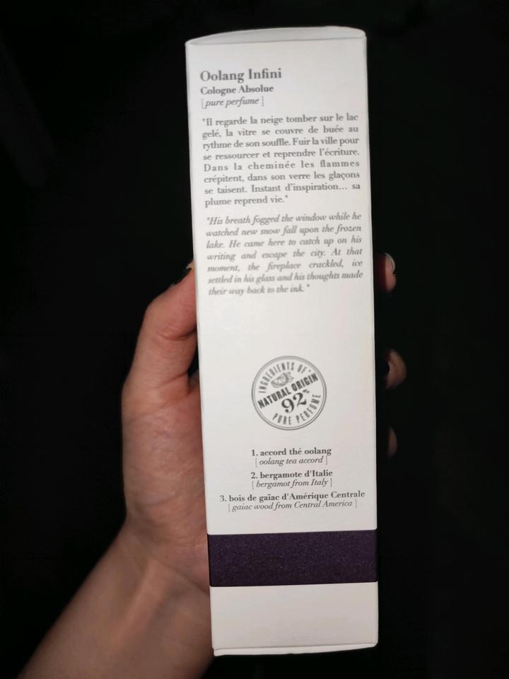 Atelier cologne Oolang infini cologne absolue 100 ml Покупала во французском доме. Оригинальный одеколон от Atelier Cologne. В таком формате больше не выпускаются. Верхние ноты:бергамот,тунисский нероли Средние ноты:чай,жасмин,кожа Базовые ноты: гваяк,ветивер,цветок табака Аромат освежающий, зелёный,фужерный. Достаточно стойкий для одеколона,так как отстоялся. Артикул: 583369