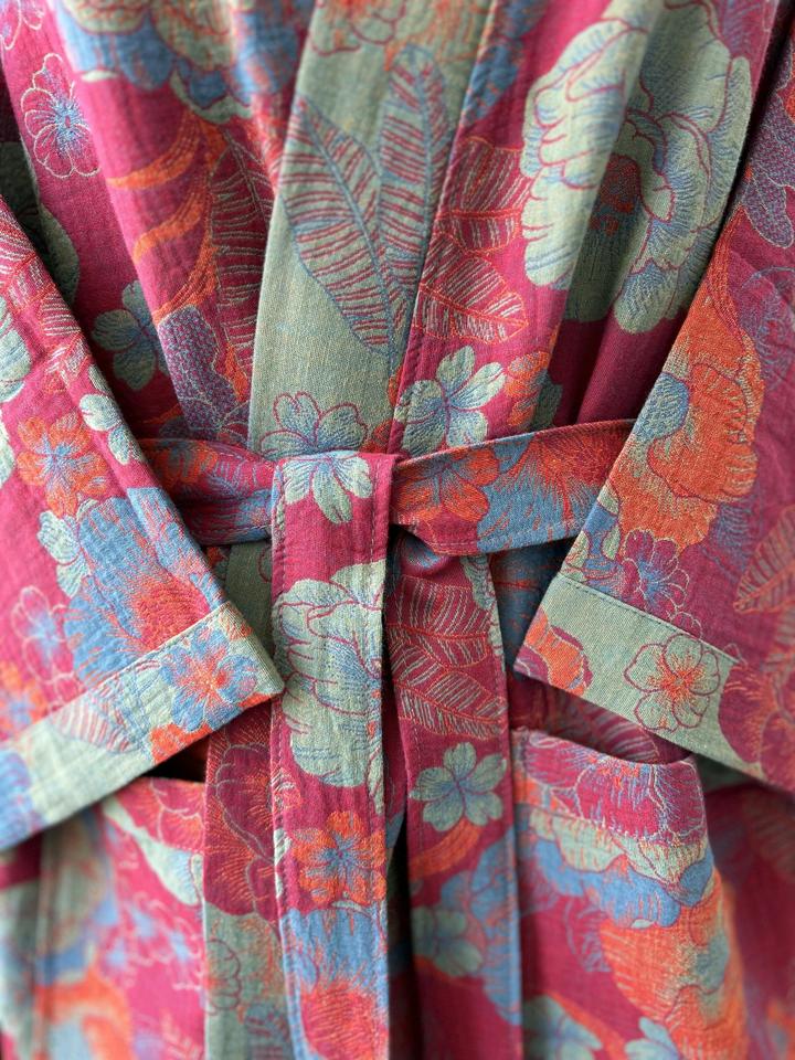 Муслиновый халат с ярким цветочным принтом — лёгкий, "дышащий" и очень приятный к телу. Размер L, маломерит - подходит на размер S. Артикул: 583375
