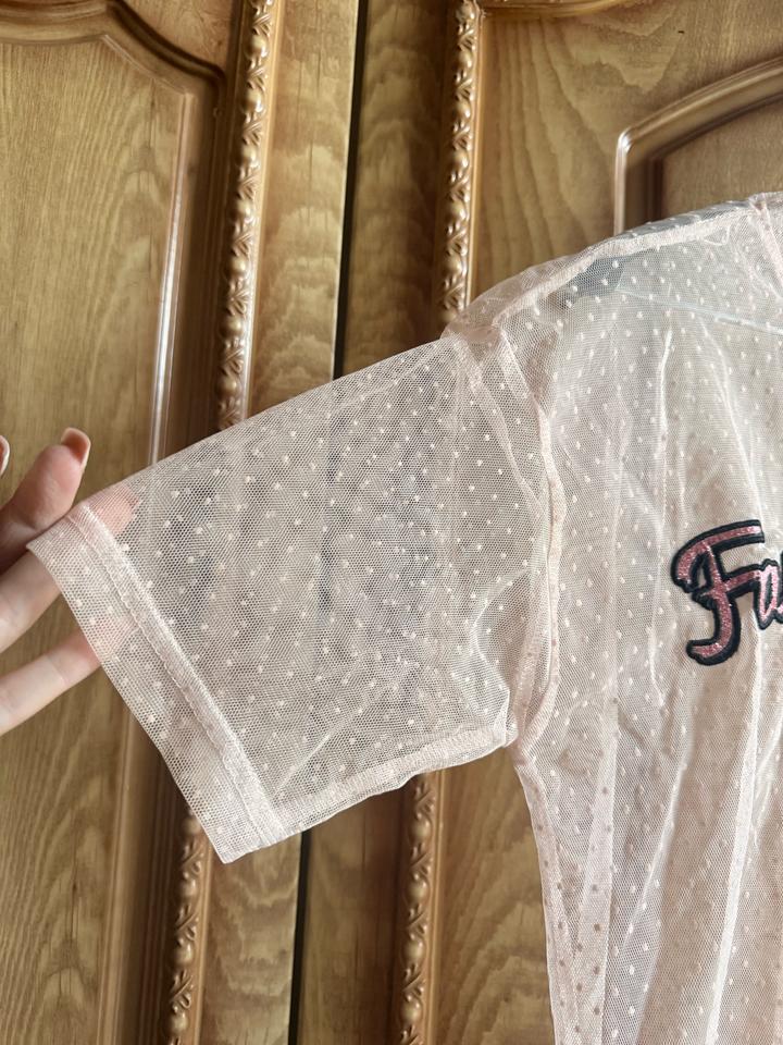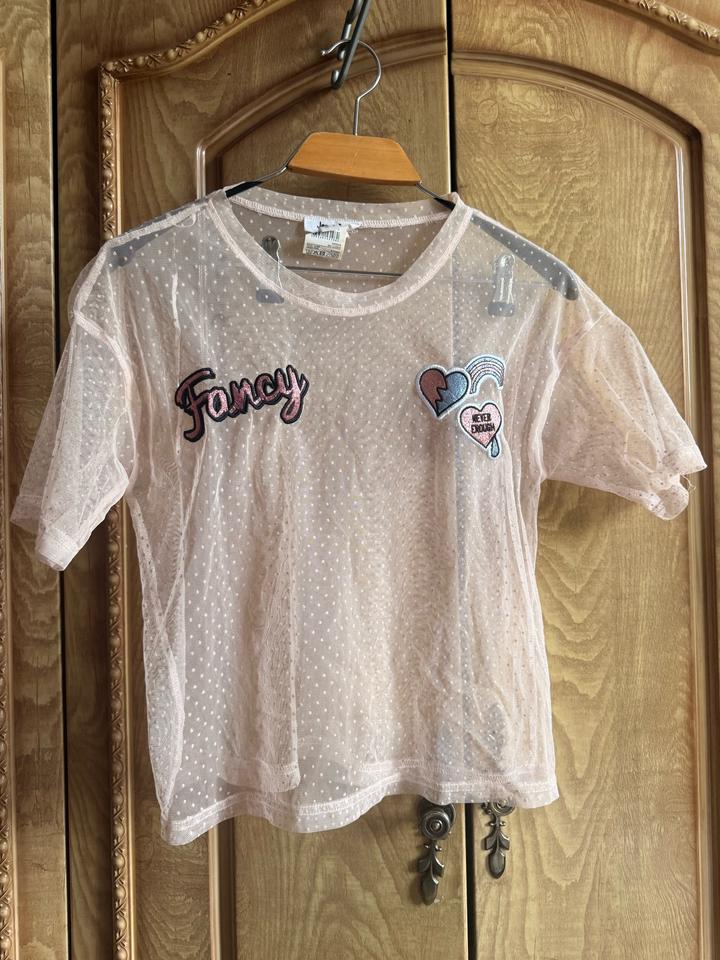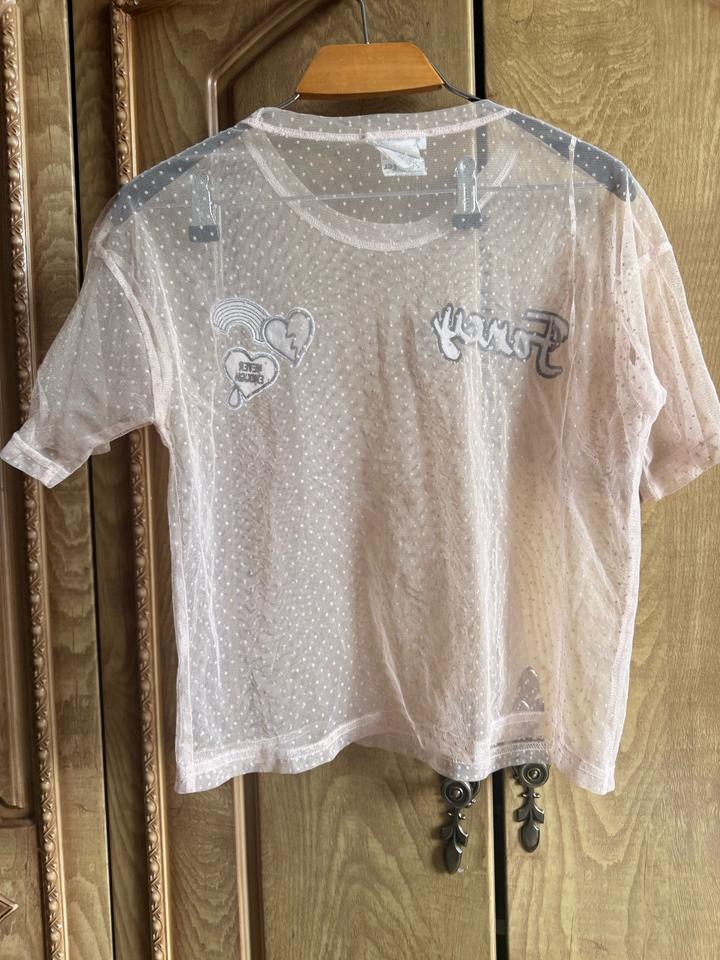 Лёгкая прозрачная футболка из сетки в нежно-розовом оттенке с мелким узором в горошек — выглядит очень аккуратно и стильно. Фишка модели: — эффект прозрачности (можно сочетать с топом или бралетом) — нашивки «Fancy» и сердечки 💔 — свободная посадка, которая не сковывает движения Отлично подойдёт для создания layered-образов: с джинсами, шортами или юбкой — добавляет лёгкость и стиль даже самому простому луку. Артикул: 583383
