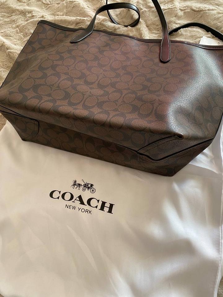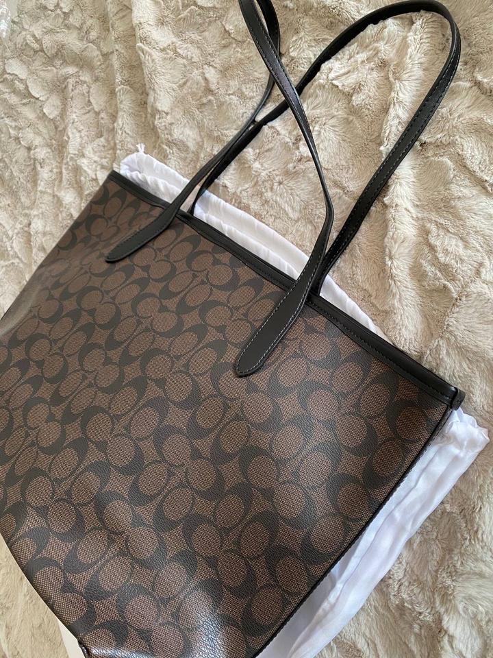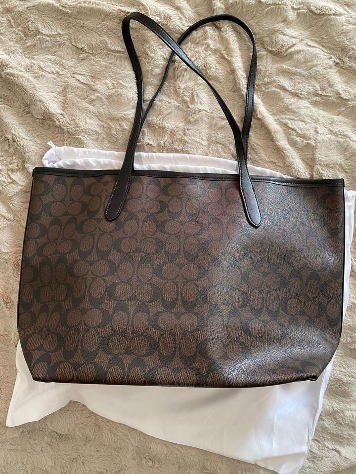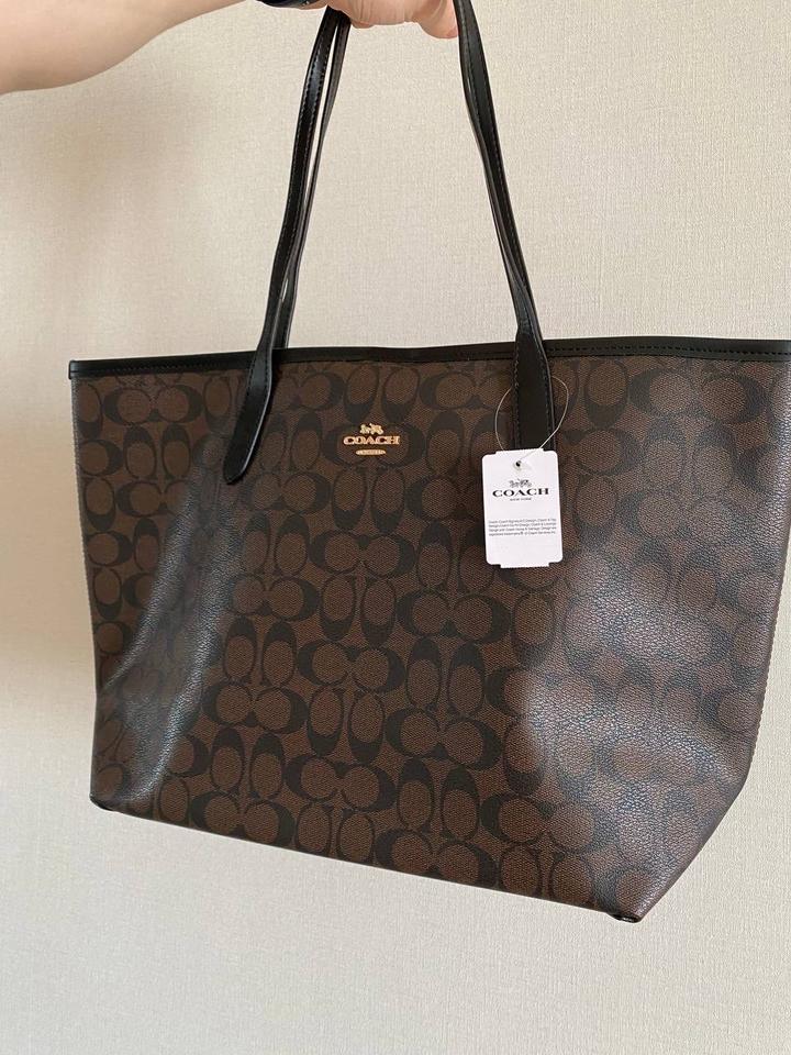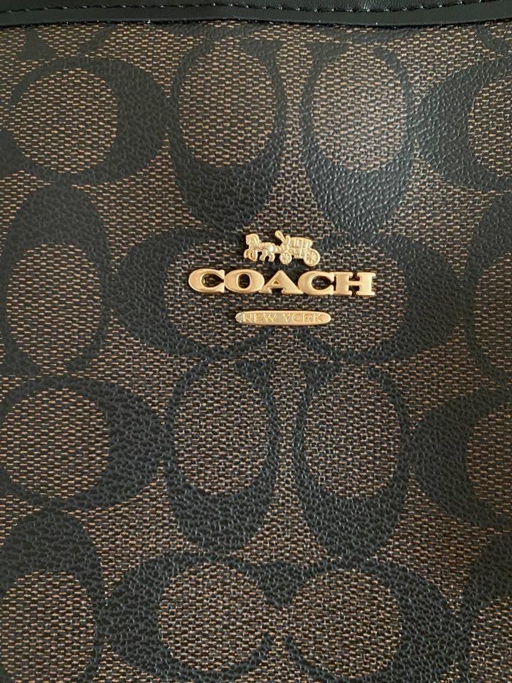 Кожаная женская сумка коричневого цвета Coach — Tote In Signature Canvas Материал: изготовлена из полотна с фирменным покрытием, детали из гладкой кожи с золотистой фурнитурой. Сумку можно использовать как повседневную сумку, сумку через плечо, сумку с верхней ручкой, рабочую сумку и т. д. В эту большую сумку поместятся планшеты, папки, книги и т. д. Отличный вариант для женщин, учителей, студентов, дам, работающих в офисе. Размеры: 36 х 23 х 16 см В комплекте фирменный картонный пакет,фирмен Артикул: 583425