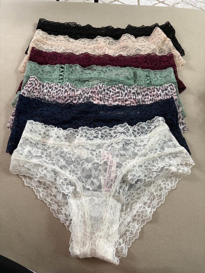 Продаю набор трусиков Victoria’s Secret (модель Cheeky) Гипюровые как шортики Оригинал! Новые! В наборе 7 штук. Классное качество, неношенные, просто достала из упаковки. Артикул: 583433