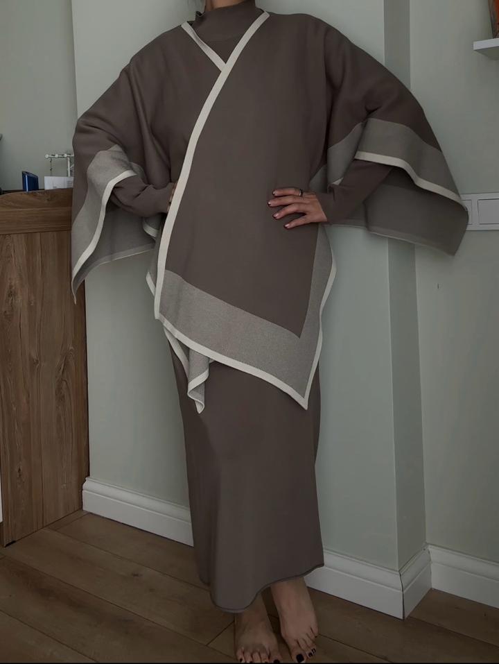 Свободное платье макси длины с кейпом. Кейп можно носить отдельно. Есть маленькие два пятна спереди. Артикул: 583435