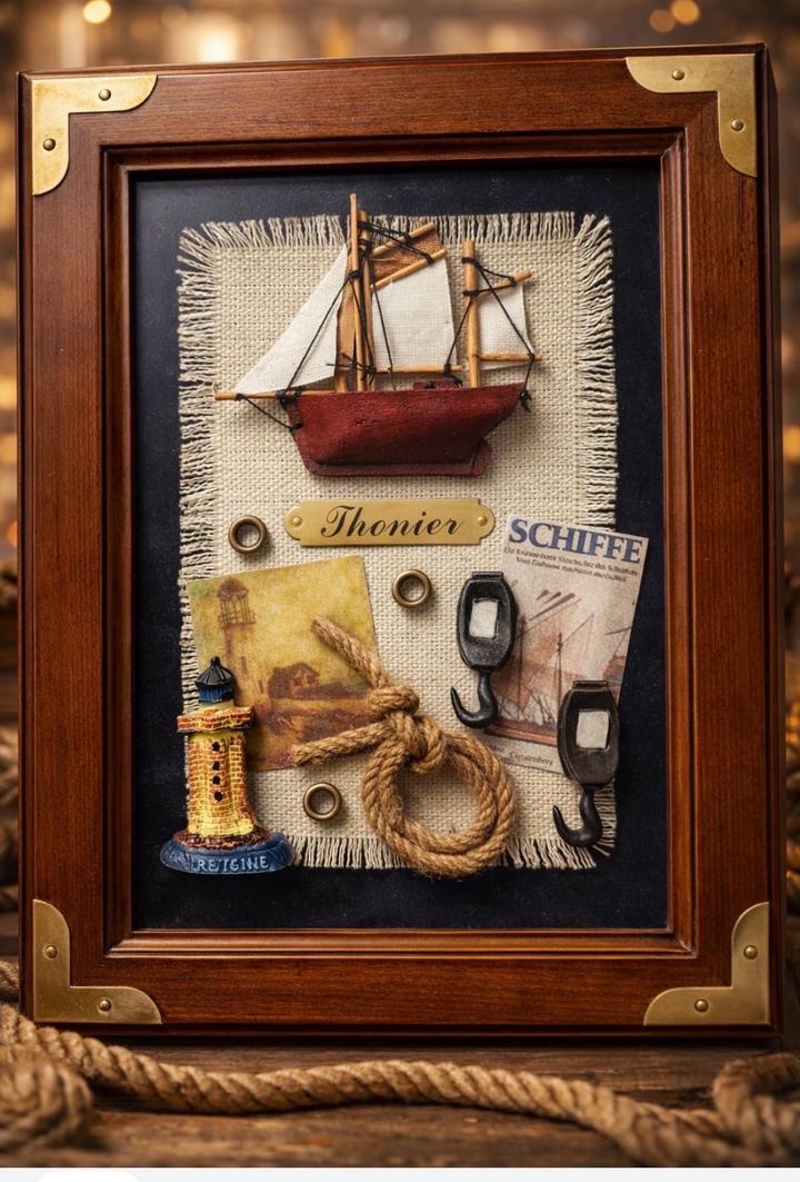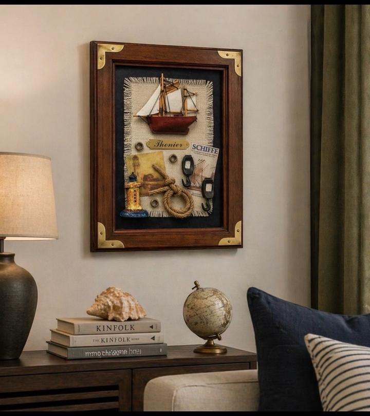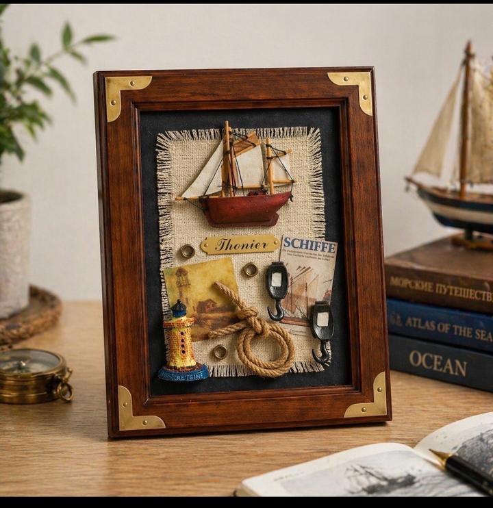 Стильное интерьерное панно в морском стиле — не просто декор, а символ благополучия и удачи. • Объёмная композиция с парусником • Натуральные элементы: канат, ткань, дерево • Винтажные детали — смотрится дорого и атмосферно • Качественная деревянная рамка Особый смысл: Парусник считается талисманом, который привлекает удачу и «прибыль» в дом (рекомендуется размещать носом внутрь дома) - Размер: 24,5 × 19 см - Деревянная рамка - Аккуратная ручная работа Артикул: 583436