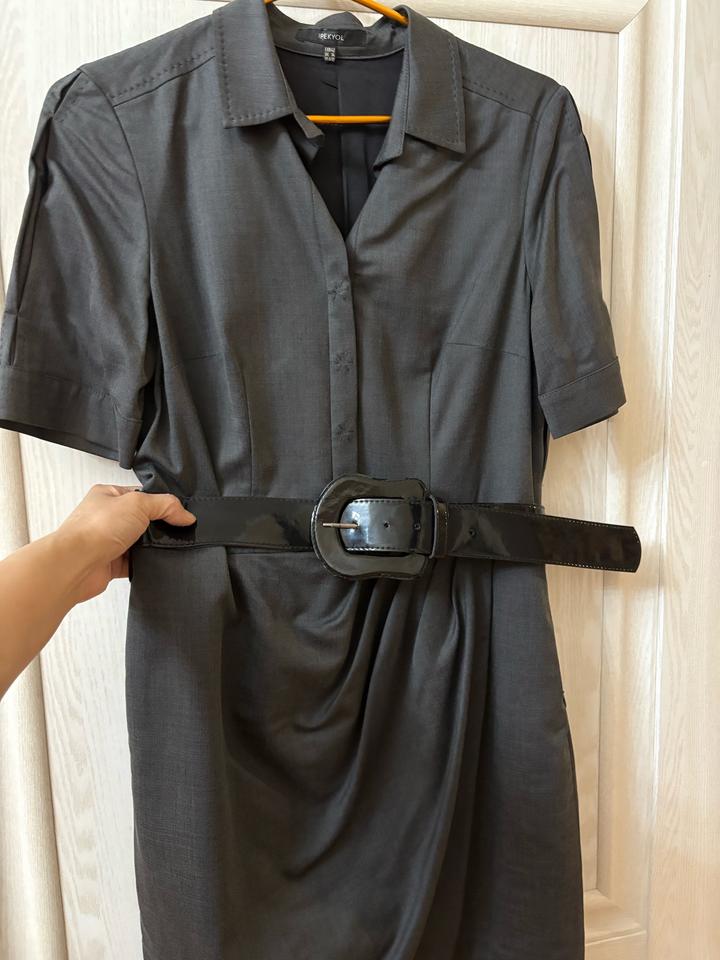 Платье серого цвета, с лакированным поясом. В отличном состоянии, надевали пару раз. Состав: вискоза 51%, шерсть 47% Турецкий бренд IPEKYOL Размер М-L Артикул: 583452
