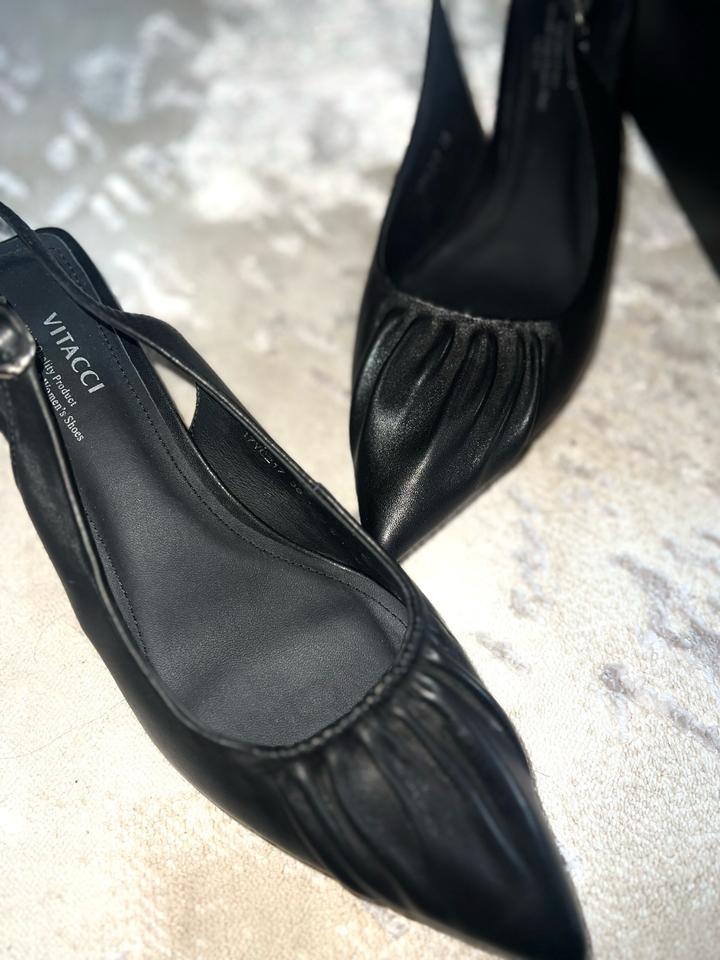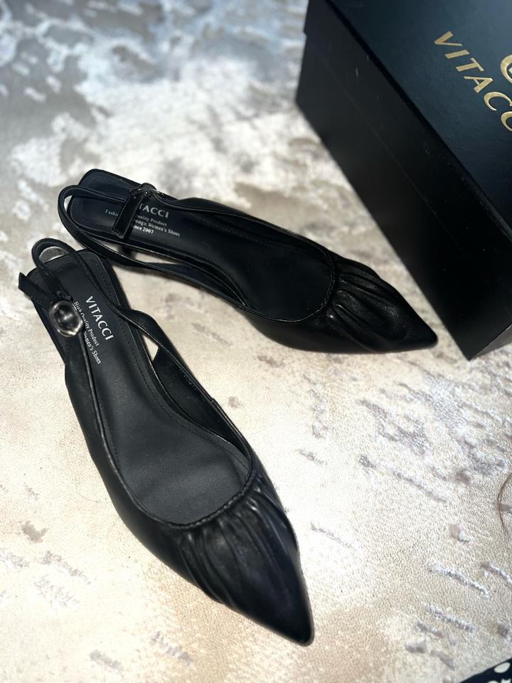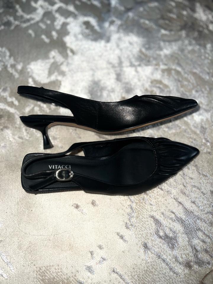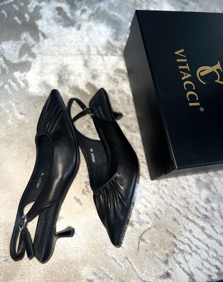 Черные туфли/босоножки от Vitacci, с каблучком на лето. Новые, носила всего 2 часа, 38р натуральная кожа. Продаю тк мне обувь оказалась велика. Покупала за 55,000 тенге. Артикул: 583458