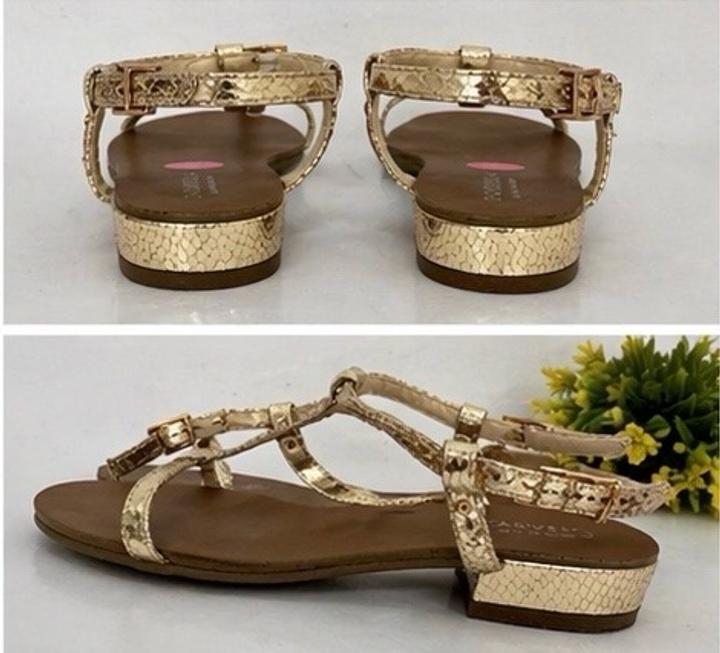 Стильные брендовые босоножки Carvela — лёгкость, комфорт и эффектный золотой блеск. • Красивый золотой оттенок (смотрится дорого) • Тонкие ремешки — аккуратно и женственно • Удобная посадка, лёгкие на ноге • Регулируемый ремешок — хорошо фиксируют стопу Состояние: хорошее, носились аккуратно Вживую смотрятся ещё красивее — очень стильная модель! Артикул: 583459
