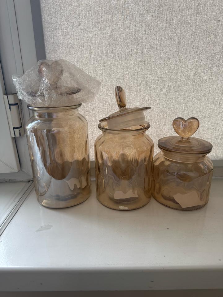Продам стеклянные баночки Абсолютно новые Очень изящные 6 штук Можно для сыпучих продуктов Или для печенья , сладостей Красиво будет смотреться на столе. Можно для орехов, сухофруктов, чай, кофе и тд Крышка плотно закрывает так как есть по бокам силикон уплотнитель. Артикул: 583472