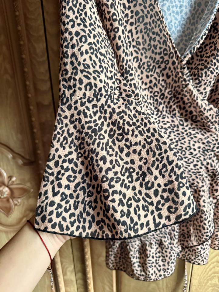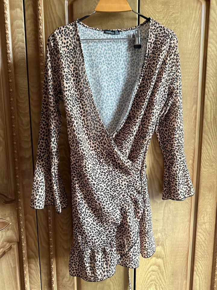 Леопардовое платье на запах Boohoo с лёгкой тканьюS/M
