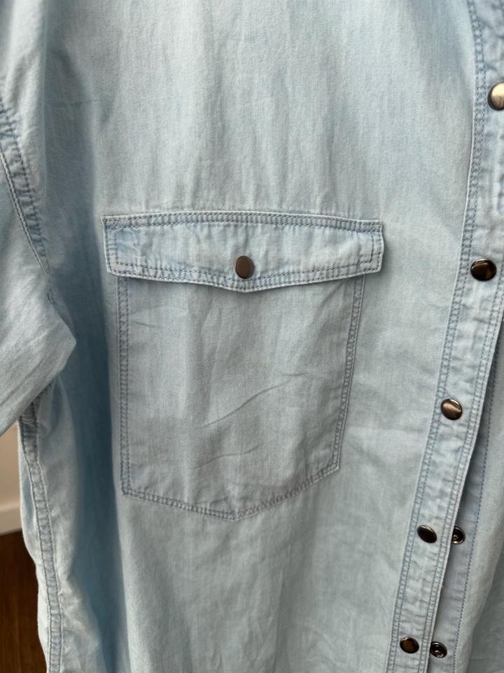 Тонкая джинса, рубашка на теплое время года, на заклепках. Нежный небесный оттенок. Неверояно приятная к телу ткань. Размер М. Состояние отличное. С небрежно закатыми рукавами смотрится очень стильно Артикул: 583483