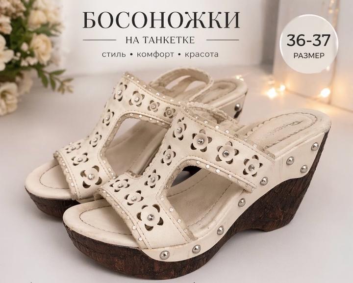 Нежные и стильные босоножки — идеальный вариант на лето. • Элегантный молочный оттенок • Ажурный узор с камнями — выглядит дорого • Устойчивая танкетка под дерево — комфорт на каждый день • Очень удобные, лёгкие и практичные На ноге смотрятся аккуратно и женственно — образ сразу становится «дороже» Артикул: 583503