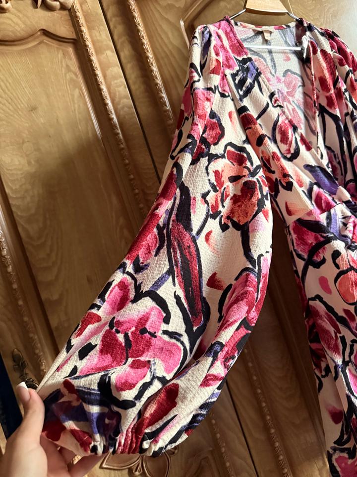 Цветочное платье на запах H&M с широкими рукавамиS/M