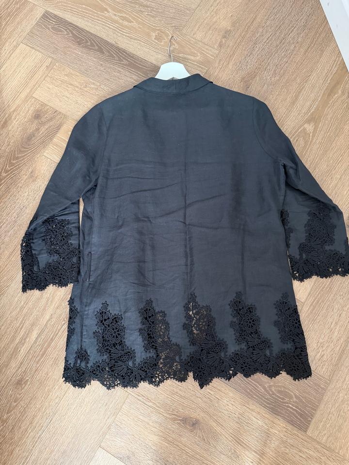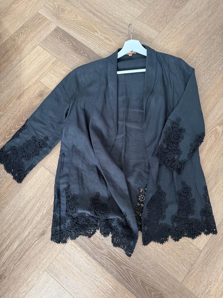 Жакетик от Эрмано Шервино изо льна, отличный вариант на прохладные летние вечера. Отделка кружевом добавляет изюма данному жакету. Качество пушка. Размер на 42-44. Отличное состояние Артикул: 583520