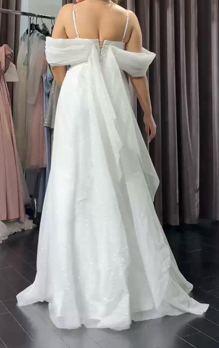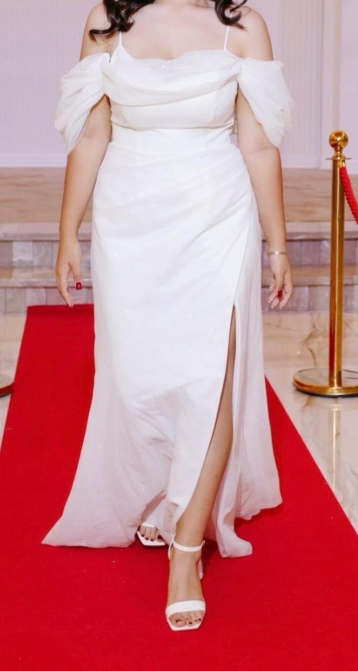 Белое вечернее платье в идеальном состоянии. Надевала один раз, поэтому оно как новое. Есть вырез и накидка, при желании накидку можно снять. Покупала за 200к, но отдам за 100к есть торг Артикул: 583530