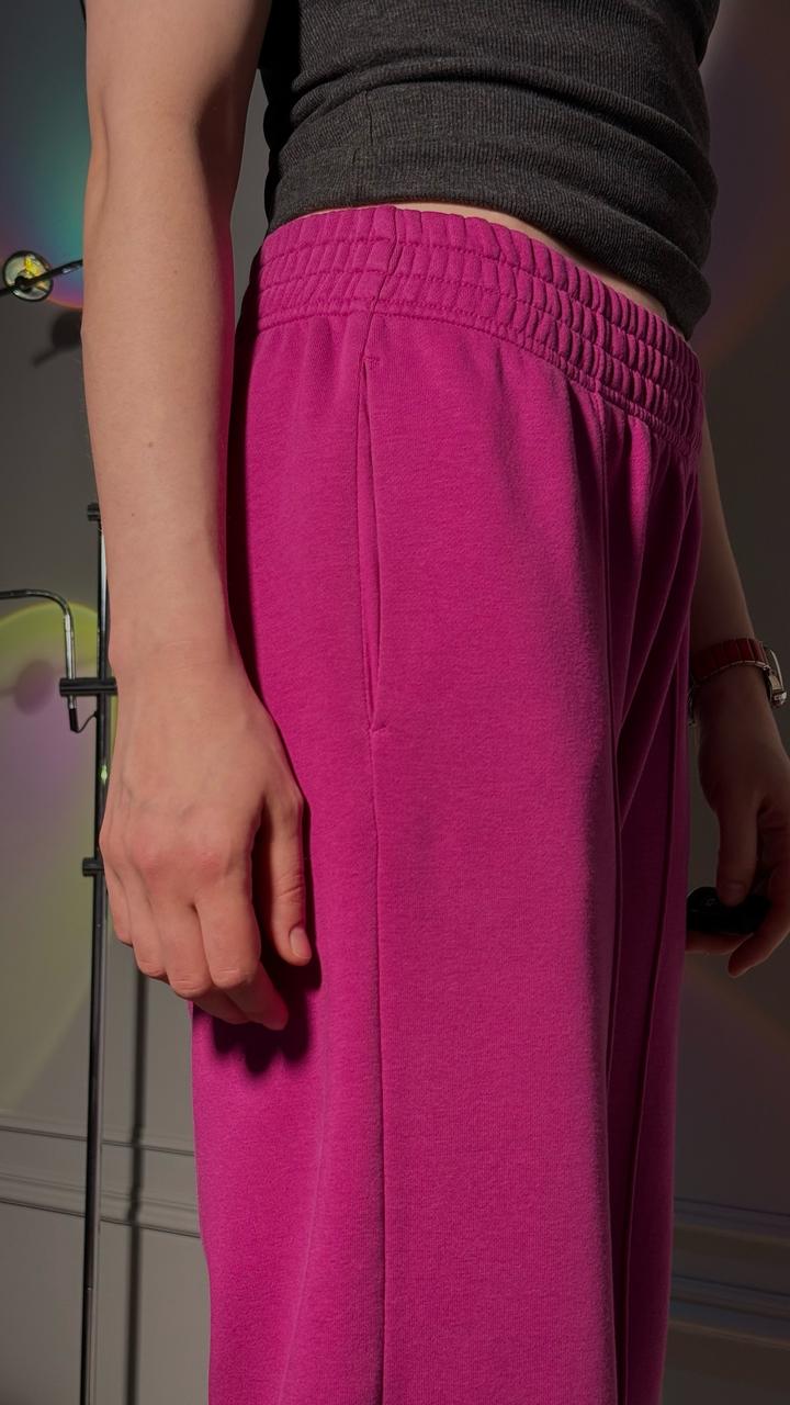 Размер: S (длина 108 см, ширина по поясу 40 см, ширина по бёдрам 64 см), посадка высокая Состав: 100% хлопок Оригинальные тёплые оверсайз джоггеры из плотного трёхнитного флиса пурпурно-розового оттенка с мягкой изнанкой и начёсом 🩷 Широкий крой, высокая посадка, рост до 170 см Артикул: 583541
