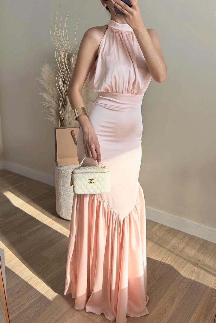 Нежно розовое платье-