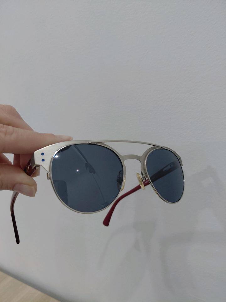 Очки смотрятся стильно, дужки темно красного цвета, очки в отличном состоянии. Покупала в Actual Optic. Оптимальное затемнение линз, антибликовая поверхность, хорошо сидят и прилегают. Продаю, т.к. у меня накопилось много очков, а эти лежат без применения. Артикул: 583554