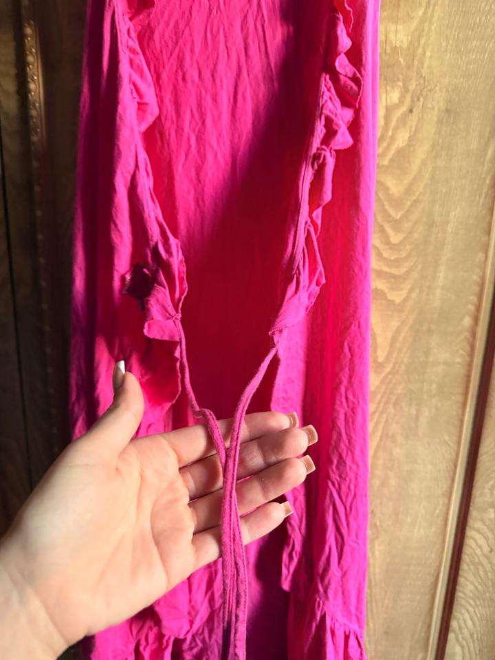 Лёгкий, женственный и очень заметный — идеальный вариант на лето, отдых или фотосессии. Этот сарафан сразу притягивает взгляд благодаря насыщенному цвету и красивым деталям. ✨ Особенности: — Насыщенный розовый цвет (очень эффектно смотрится в жизни и на фото) — Асимметричный крой с воланами по всей длине — Декоративная отделка и аккуратный пояс на талии — Лёгкая, приятная к телу ткань — Размер: M — Бренд: CYELL Артикул: 583562